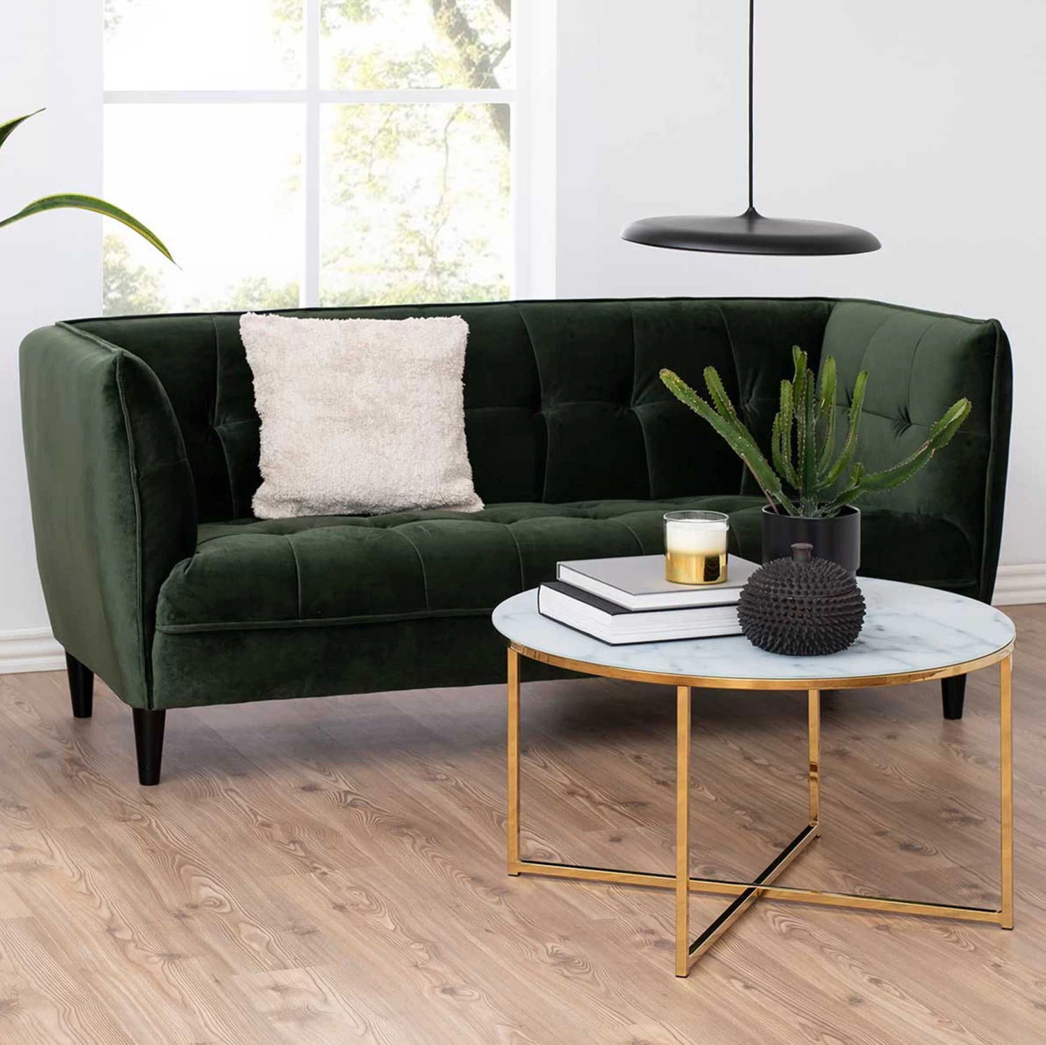 In de woonkamer neemt je bank een belangrijke plaats in. Reden te meer om op zoek te gaan naar een uniek exemplaar waar je niet snel op uitgekeken raakt! Deze prachtige Don bank is bekleed met fluweel in een bosgroene kleur en heeft zwarte pootjes uit rubberhout. De luxueuze bekleding geeft de bank een chique uitstraling en maakt ook dat de bank erg zacht aanvoelt. In deze mooie, gestoffeerde bank kunnen 2 tot 3 personen plaatsnemen. Verkrijgbaar in verschillende kleuren.