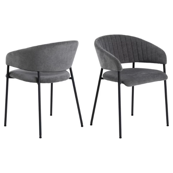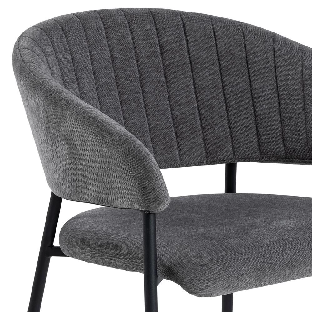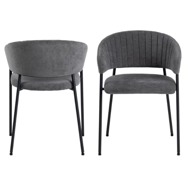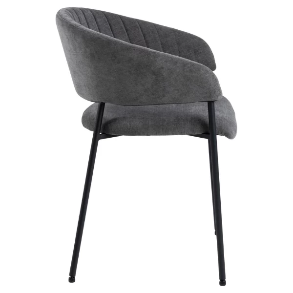 Armstoel Ann is voorzien van verticale stiksels en bekleed met lichtgrijze stof. Deze stof is scheur- en slijtvast en voelt zacht en warm aan. Door zijn grijze bekleding is deze stoel een tijdloos meubelstuk, dat in elk interieur past. Het onderstel van de stoel bestaat uit 4 robuuste poten uit zwart gepoedercoat metaal. Deze stoel is ook verkrijgbaar met een donkerblauwe bekleding.