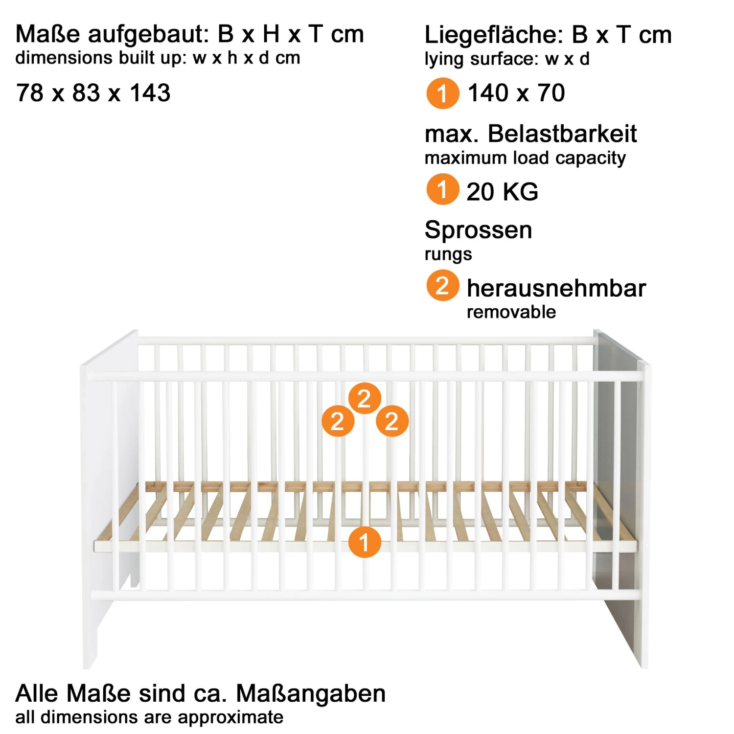 Kortom, het babybed in lichtgrijs is een stijlvolle en praktische keuze voor ouders. Met zijn moderne ontwerp, duurzame constructie en handige functies biedt het de perfecte combinatie van stijl en functionaliteit. Creëer een prachtige kinderkamer voor je kleintje met het Pia-babybed.