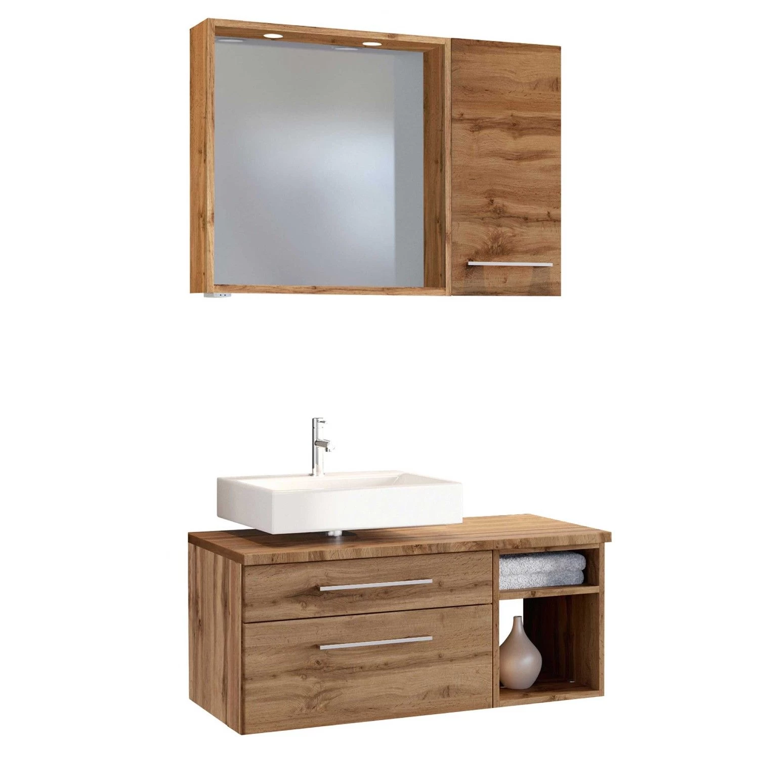 De meubelset Dasa in wotan eikdecor zorgt voor een warme, maar erg trendy sfeer in je badkamer. De combinatie van de gemelamineerde spaanplaat en de afwerking van de voorkant in matte MDF schept een uiterst solide, aangenaam ogend geheel. De wastafelonderkast is uitgerust met twee lades van verschillende grootte. Daarnaast is een geïntegreerd kastje met legplank, waardoor je toiletgerief gemakkelijk kunt opbergen. De spiegel en de hangkast maken de badkamer van je dromen nog completer! Ontdek ook de rest van de witte, mat grijze en wotaneiken Dasa-collectie bij Emob!