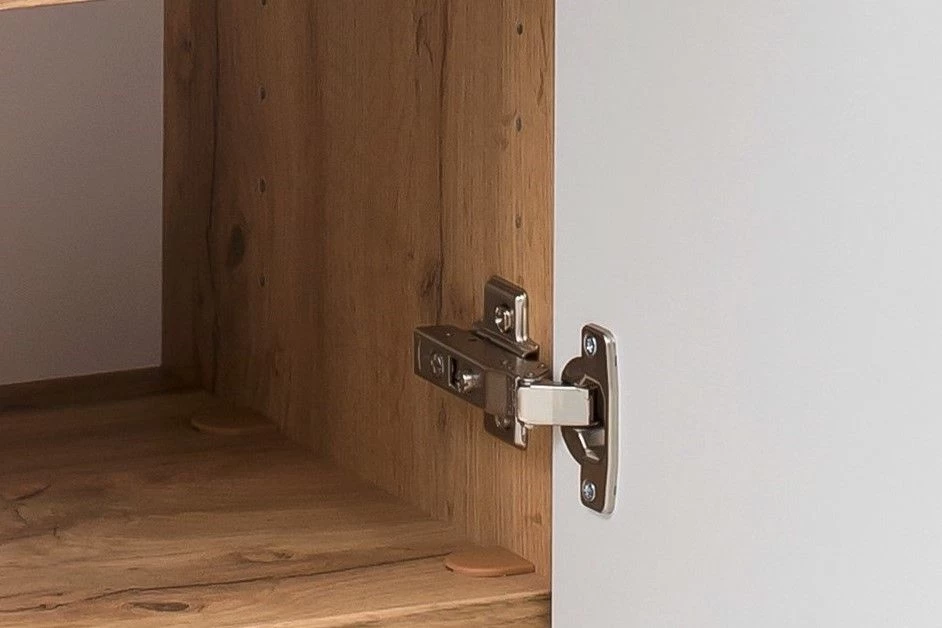 De kolomkasten worden geleverd met 4 pootjes, waardoor je zelf kan kiezen of je ze aan de wand ophangt of op de vloer installeert. De meubels zijn gemaakt van gemelamineerde spaanplaat en MDF en kregen een afwerking in eikdecor.