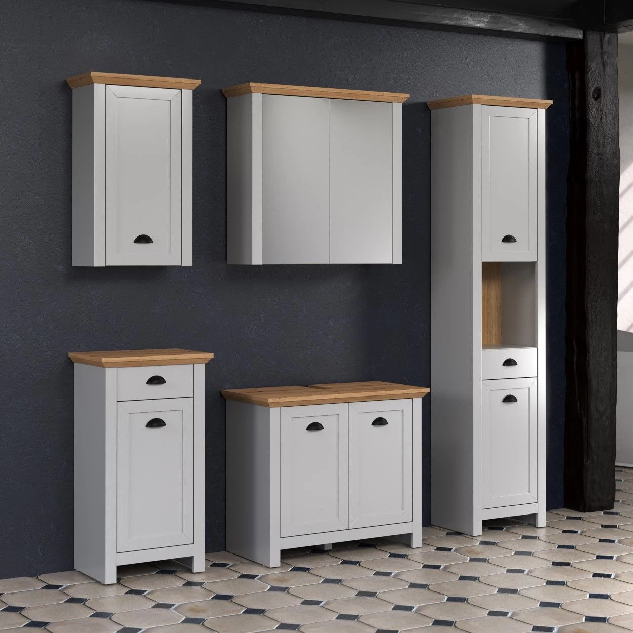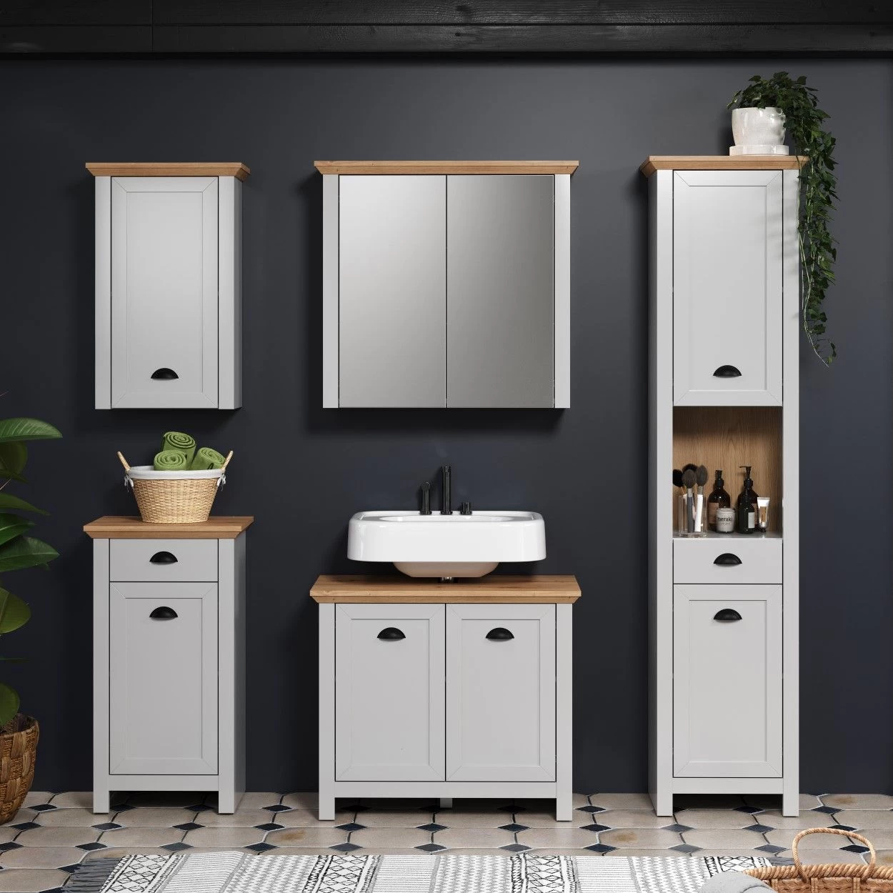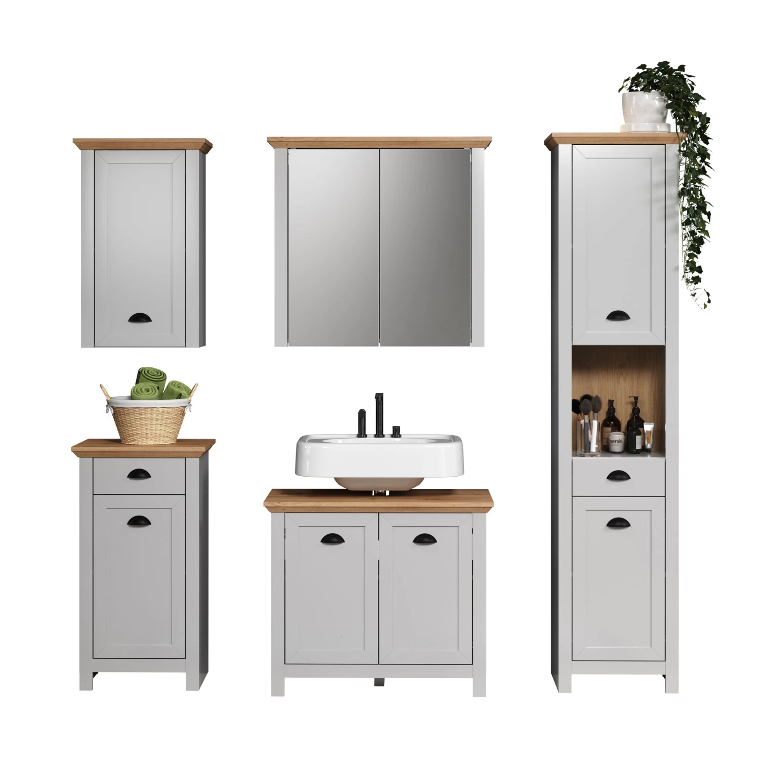 Hoewel de Landside-combinatie geen volledig uittrekbare rails bevat, maximaliseert het slimme ontwerp de opbergruimte zonder afbreuk te doen aan de toegankelijkheid. Je kunt je badkamerbenodigdheden gemakkelijk organiseren en binnen handbereik houden, waardoor je dagelijkse routine efficiënter en aangenamer wordt.
