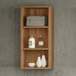 Badkamerrek Malvo 30x18x64cm uit spaanplaat. Met twee legplanken. Afwerking in melamine in eikdecor.