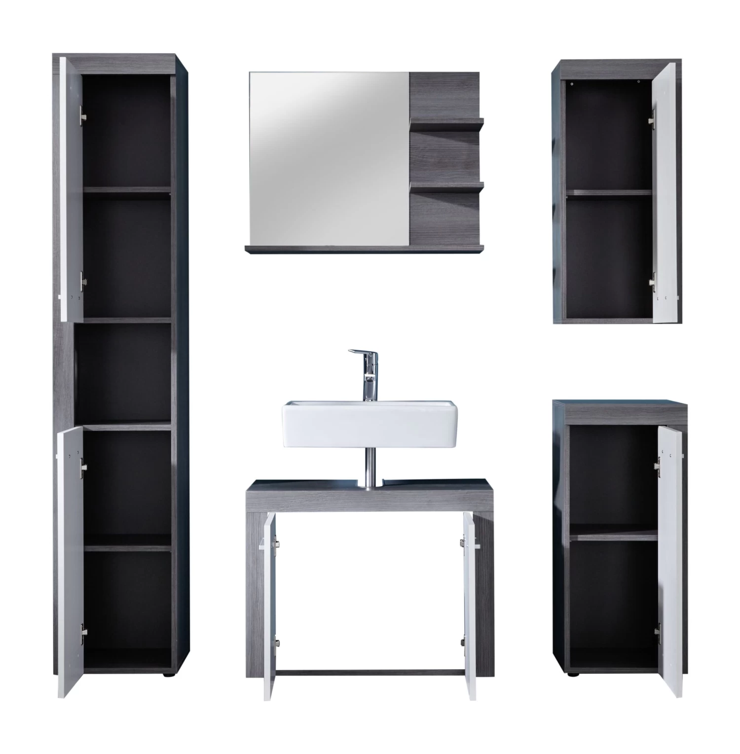 Investeer in deze waardevolle en moderne badkamercombinatie in wit melamine, met het rookzilvere kleur, en verander je badkamer in een mooie en functionele ruimte. Mis deze ongelofelijke aanwinst voor je huis niet.