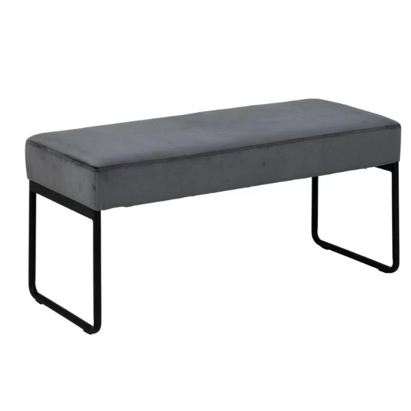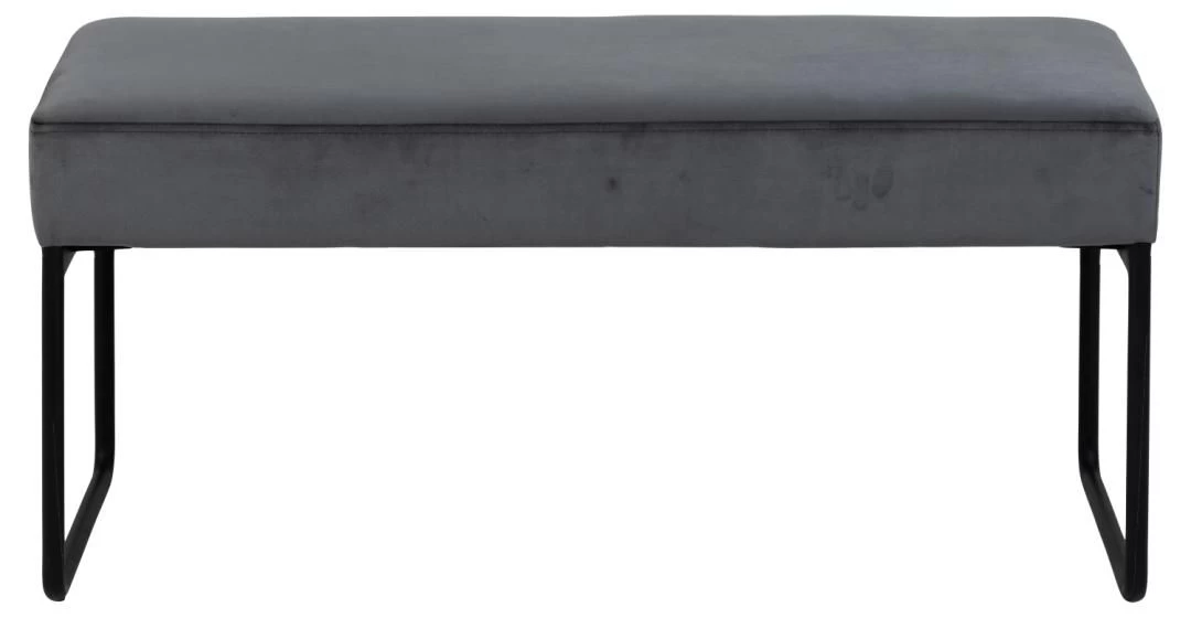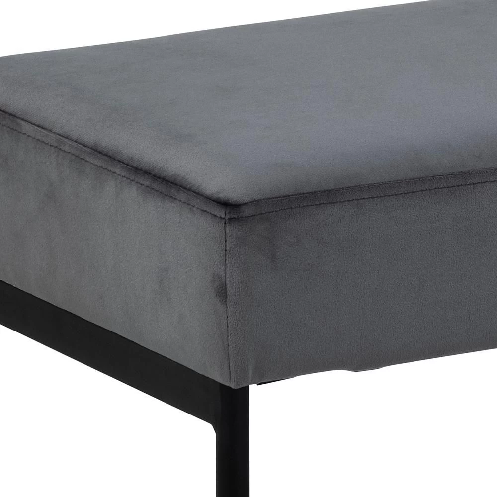 Xandee-bank in grijze veloursstof, met onderstel in zwart gepoedercoat metaal.Â