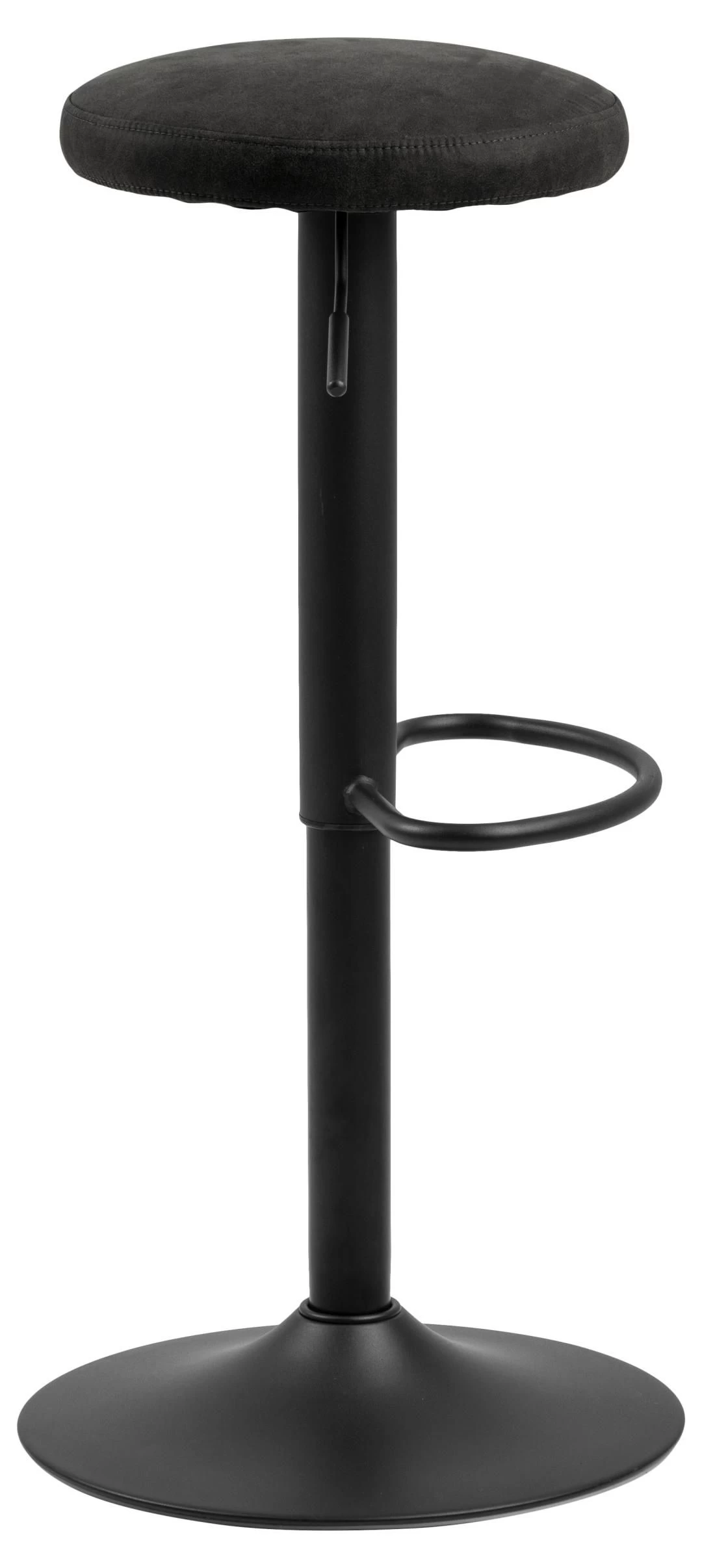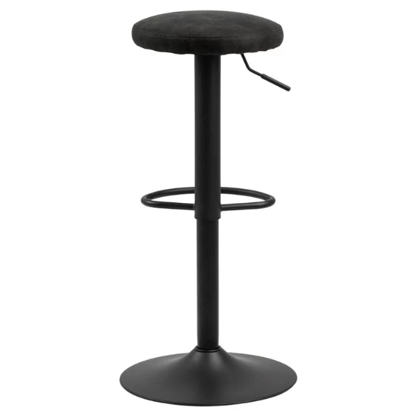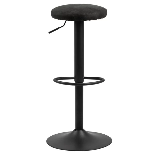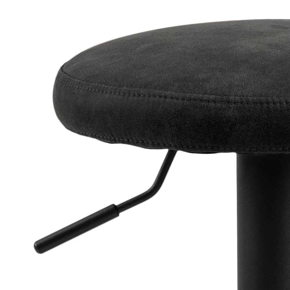 Personaliseer uw woonruimte met deze moderne en industriële barkruk. De Finley barkruk is uitgerust met een hendeltje, om de hoogte te verstellen, en een voetsteun. De gepoedercoate trompetvoet zorgt voor stabiliteit en is gemaakt uit metaal met een afwerking in matzwarte poedercoating. De zitting is gevuld met polyurethaan en bekleed met antracietkleurige VIC stof.