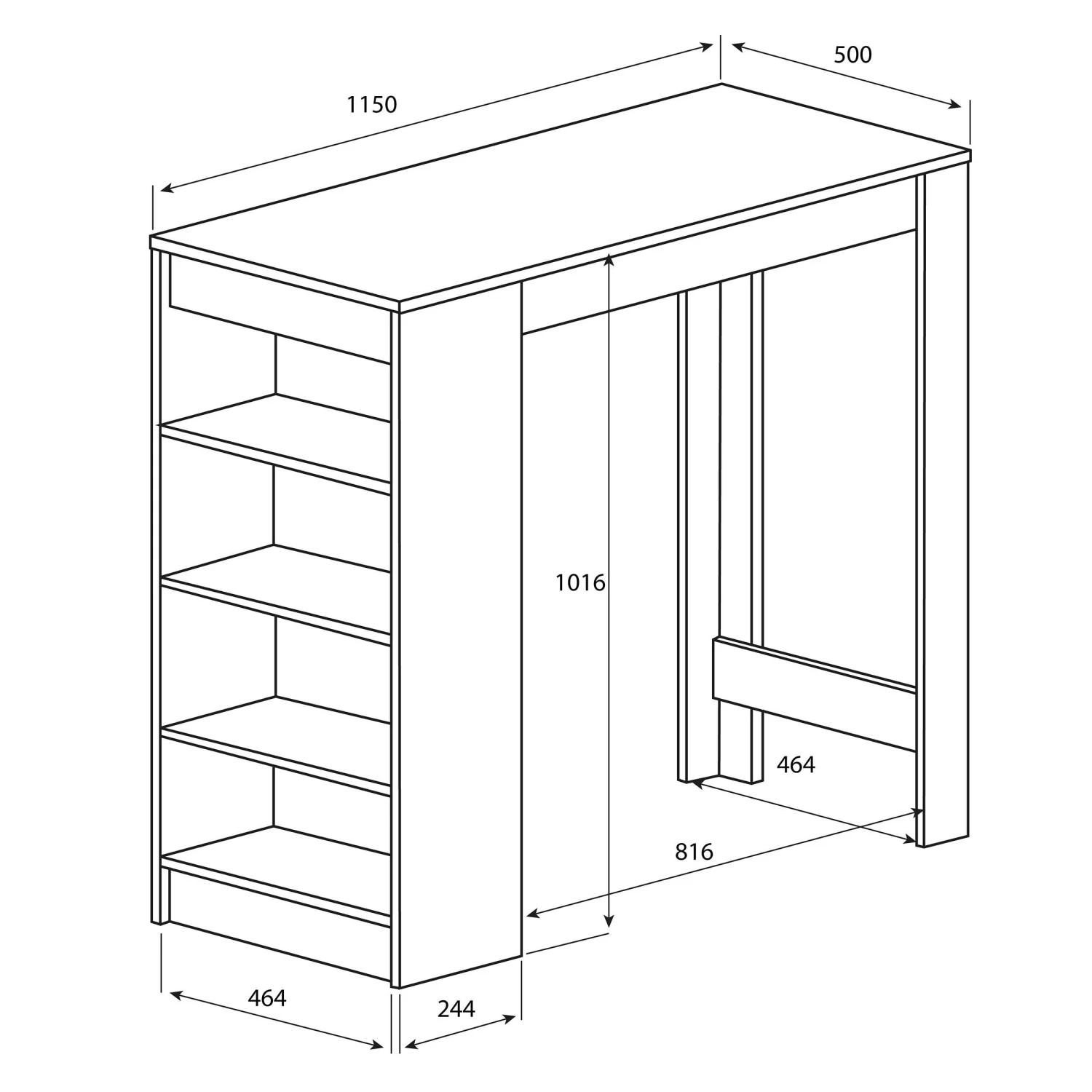 Deze bartafel is ideaal in kleine keukens of studio’s. De tafel wordt aan de muur bevestigd en is geschikt voor 2 personen. Aan de zijkant vind je extra opbergruimte waar je over 3 legplanken beschikt.