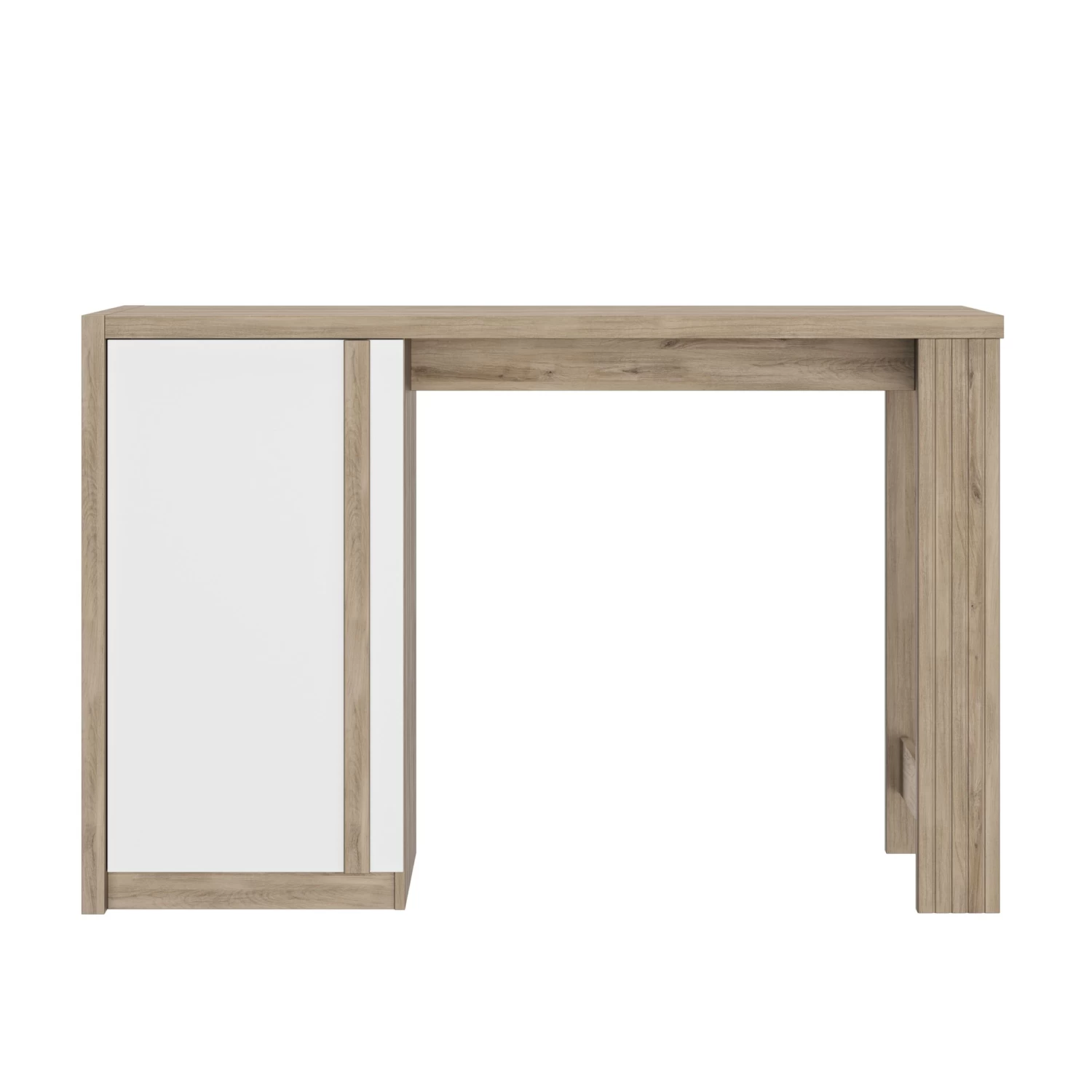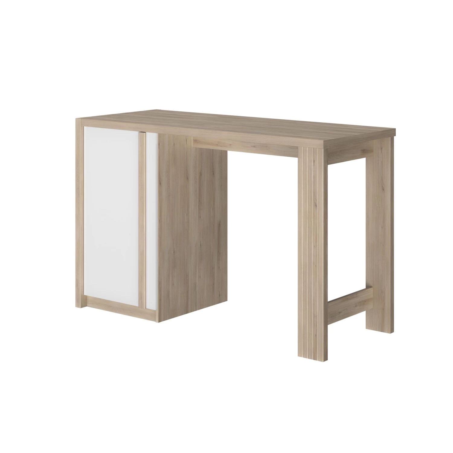Bartafel Jolanda, gemaakt uit spaanplaat met een afwerking in lichte eik decor. Uitgerust met één deur en drie legplanken.