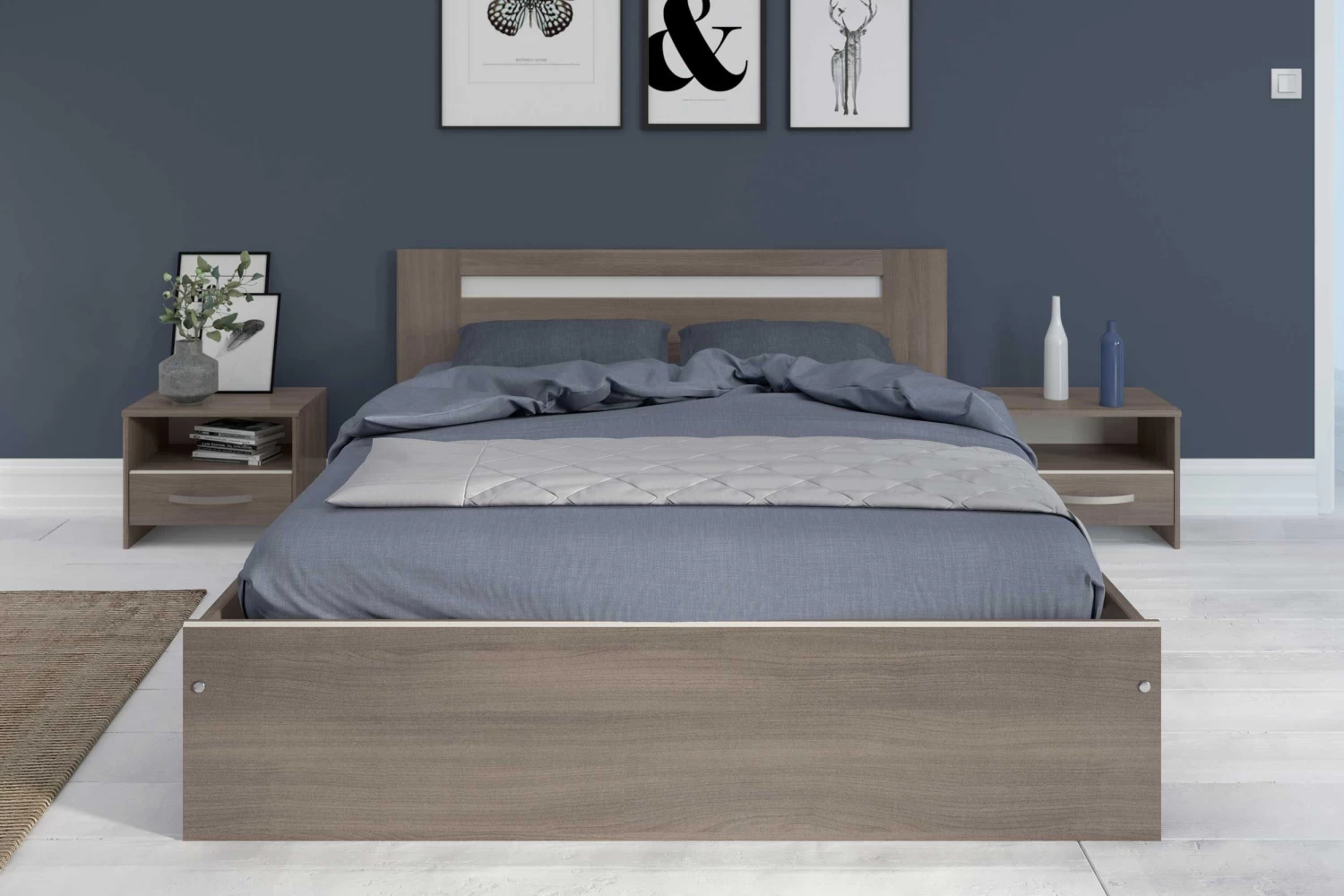 De Evo collectie biedt moderne en praktische slaapkamermeubelen uit spaanplaat met een donker walnootdecor.