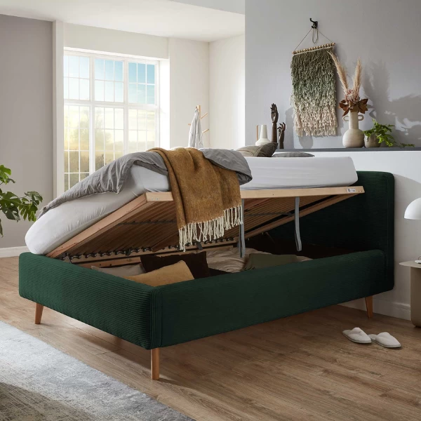 Bed Madras 140x200cm Met Opbergruimte Ribfluweel – Donkergroen