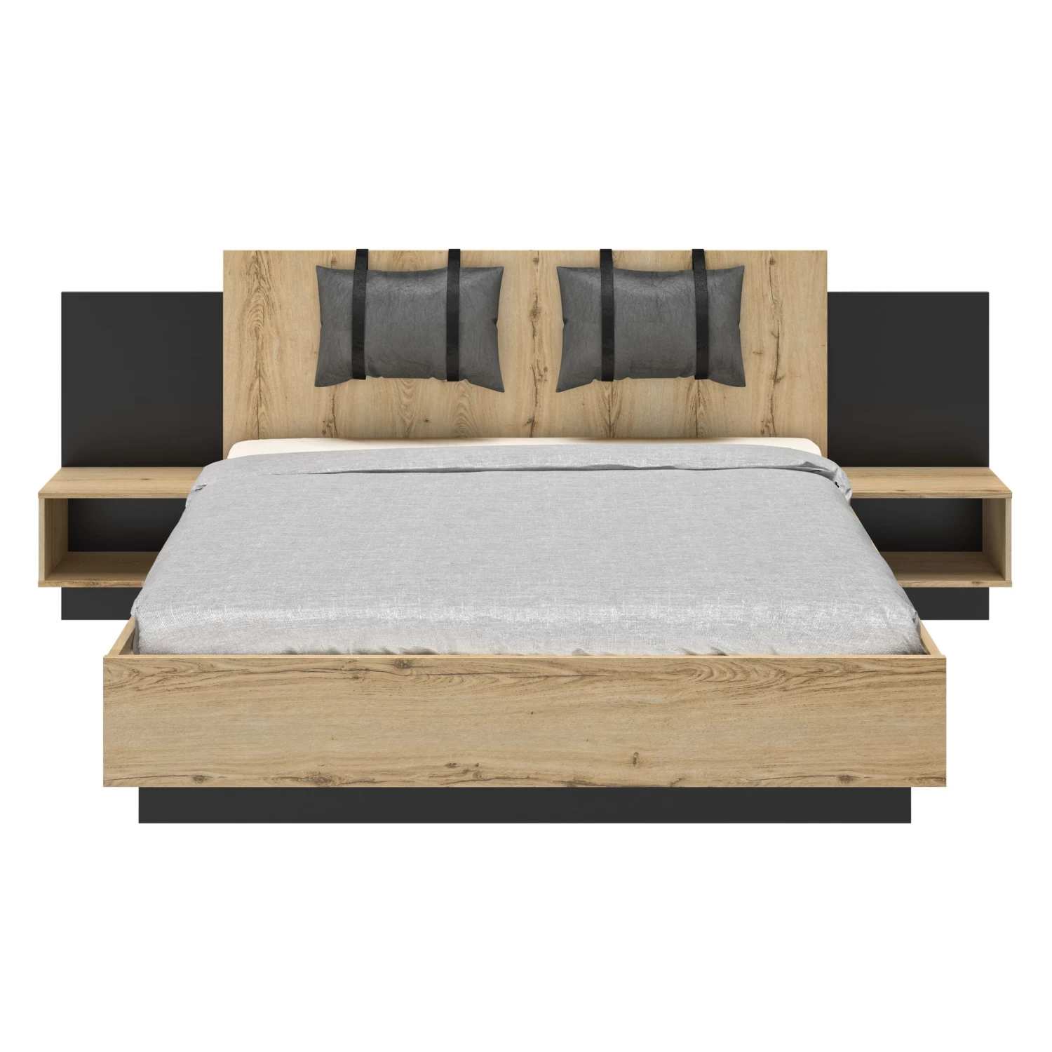 Bed Marzano 160x200cm Met Twee Nachttafeltjes – Helvezia Eik