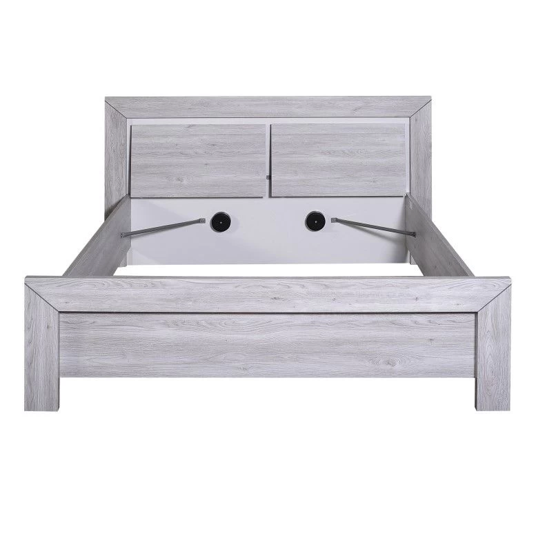 De meubelen zijn gemaakt van spaanplaat met een decor van grijze eik.