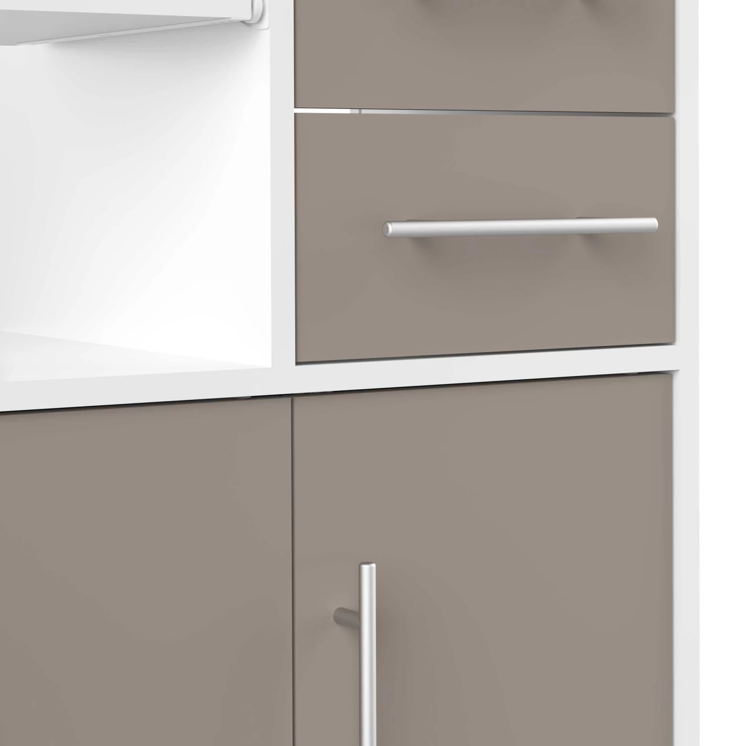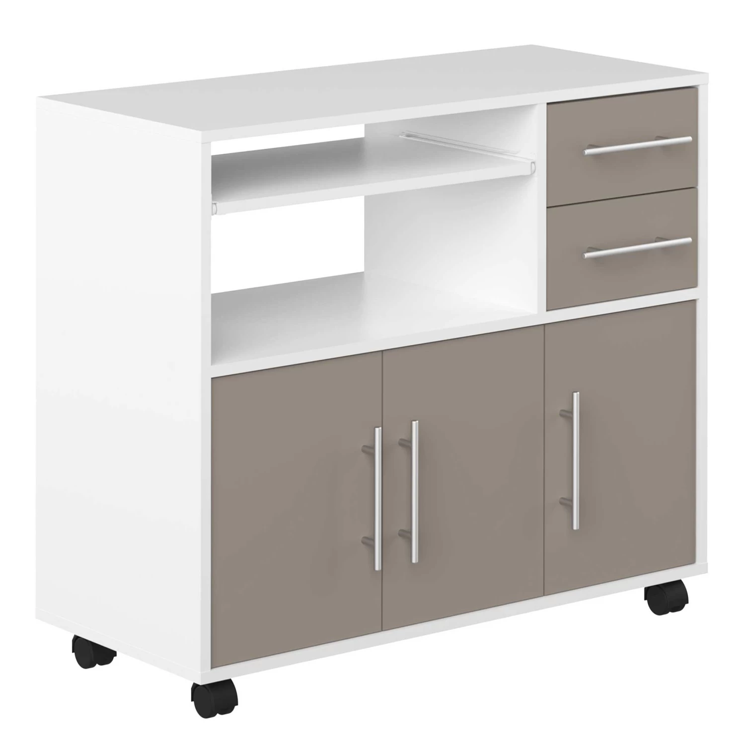 Bijzetkastje Cesar is gemaakt van spaanplaat. De deuren en laden kregen een taupe kleur. Je vindt op onze site ook andere kleurencombinaties.