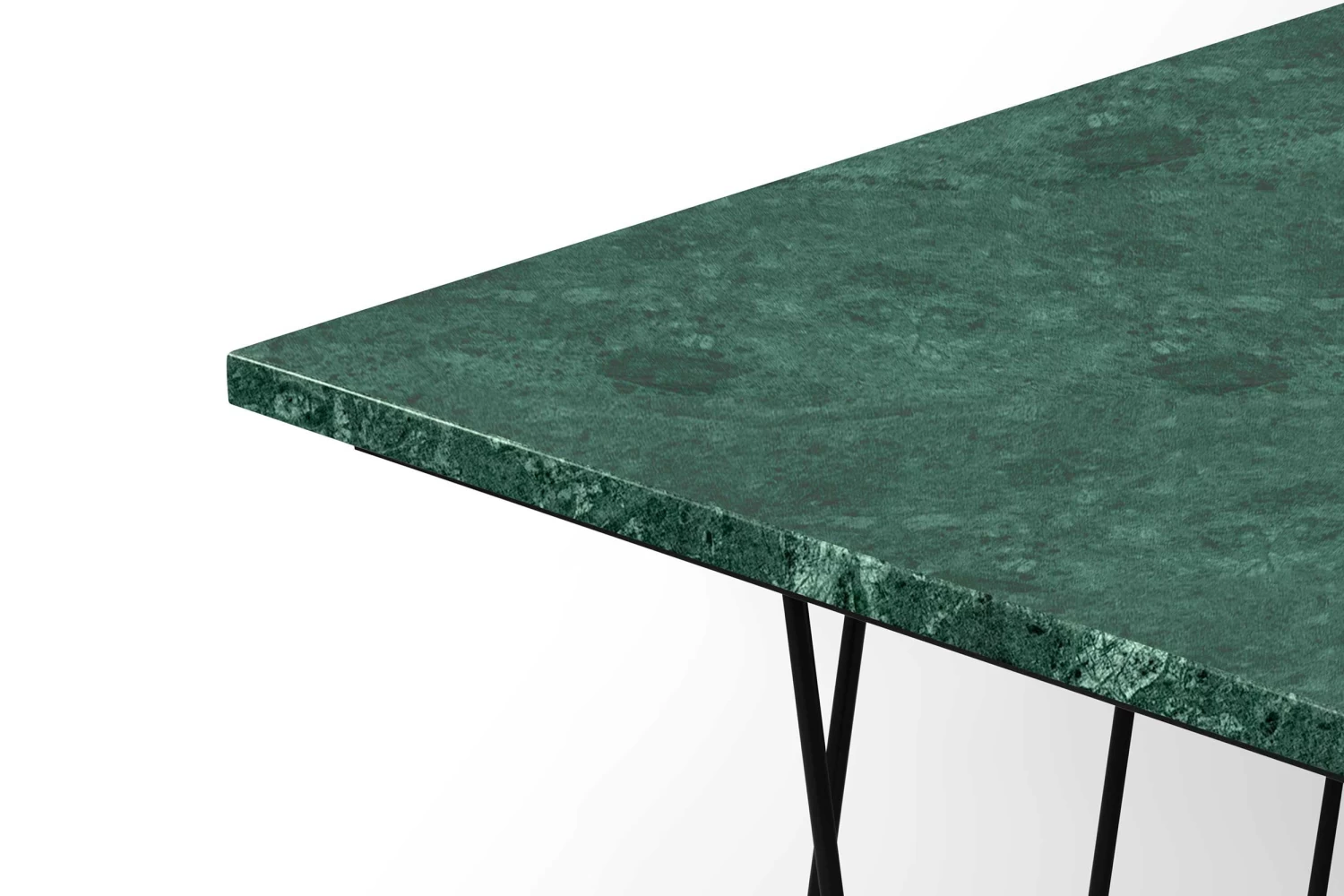 Bijzettafeltje Helix met zwart stalen frame en tafelblad van groen marmer.