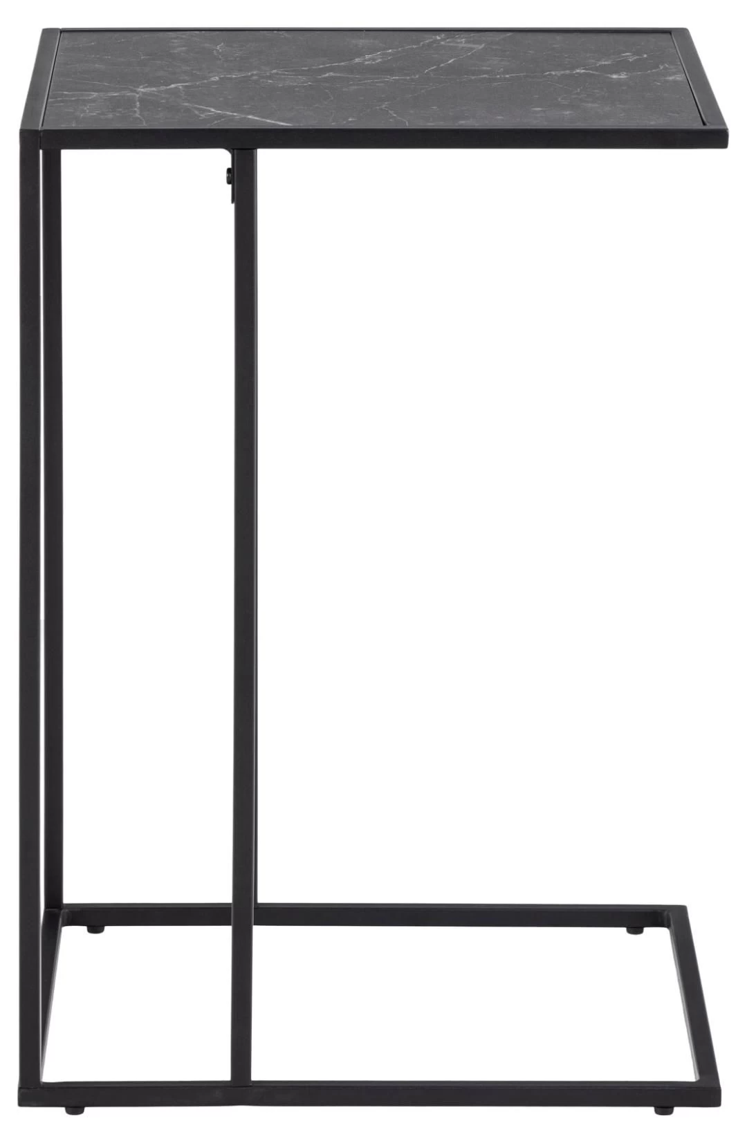 Bijzettafel Infinity (43×35 cm) met tafelblad in marmerlook en zwart gepoedercoat metalen onderstel.Â