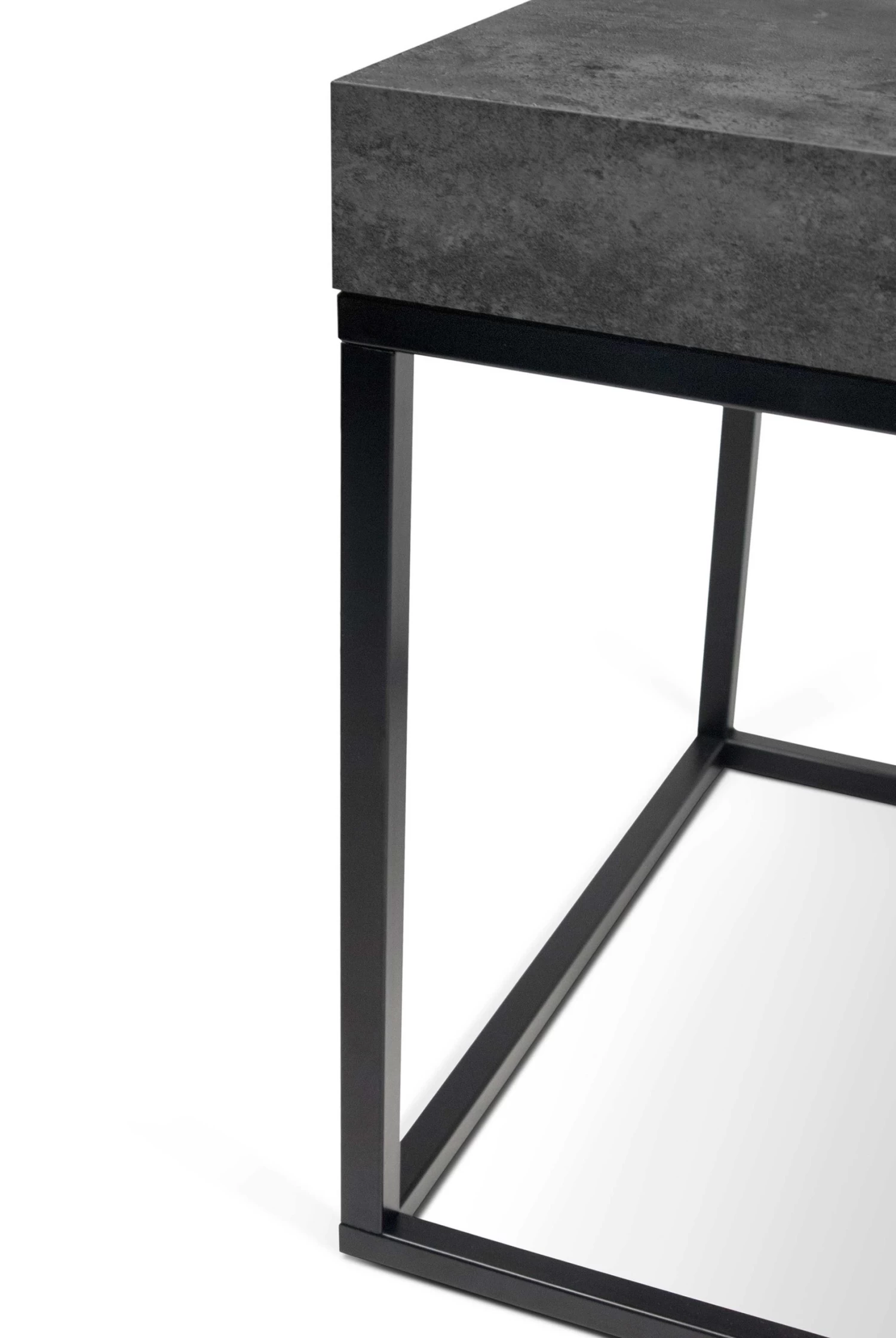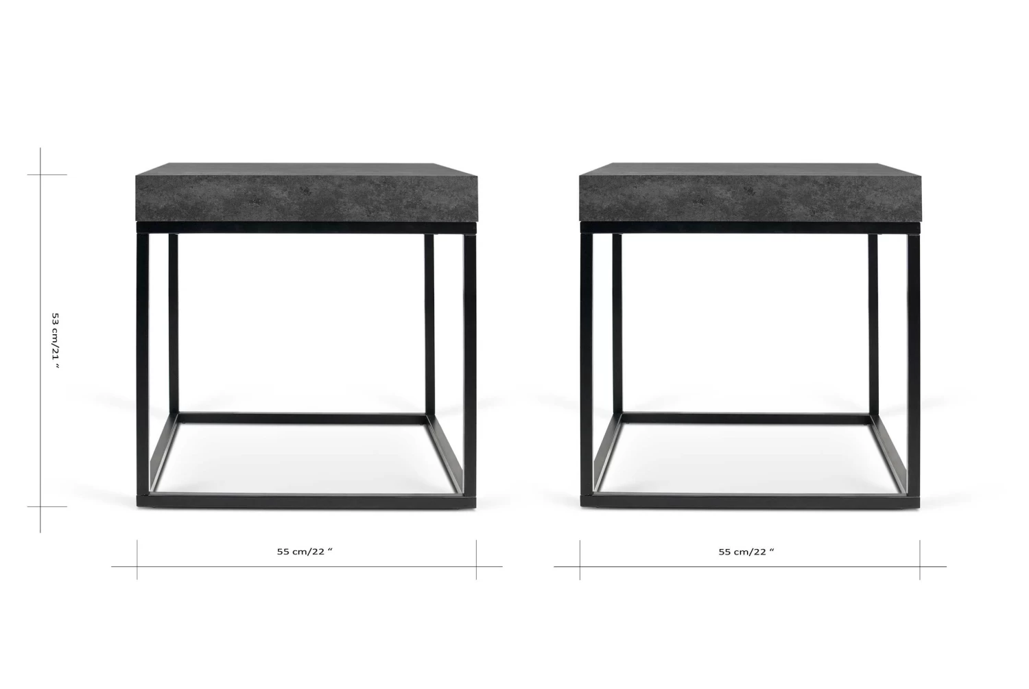 Vierkante bijzettafel Petra met zwart stalen frame en tafelblad in betonlook.