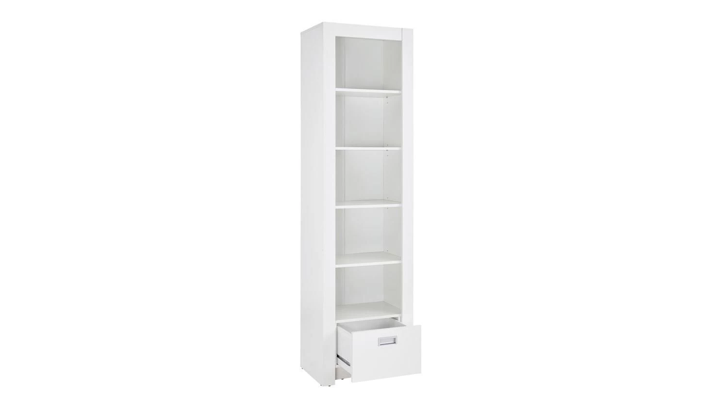 Boekenkast Arkea met 1 lade en 4 legplanken, gemaakt uit spaanplaat in wit.Â