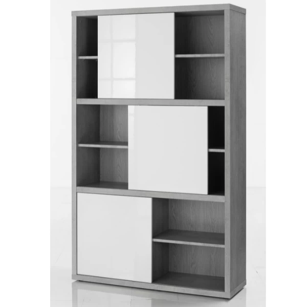 Boekenkast Prato 120cm Met Drie Schuifdeuren – Beton / Hoogglans Wit