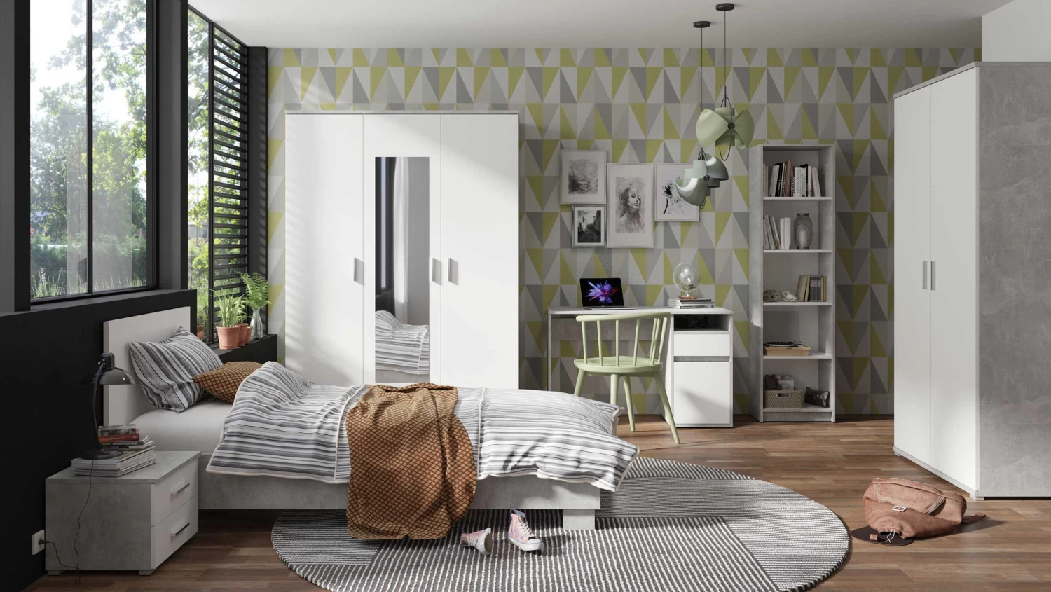 Met de meubelen uit de Soma collectie geef je een moderne en eigentijdse inrichting aan je slaapkamer. Al de meubelen zijn gemaakt van spaanplaat en afgewerkt in wit/betonlook.Â