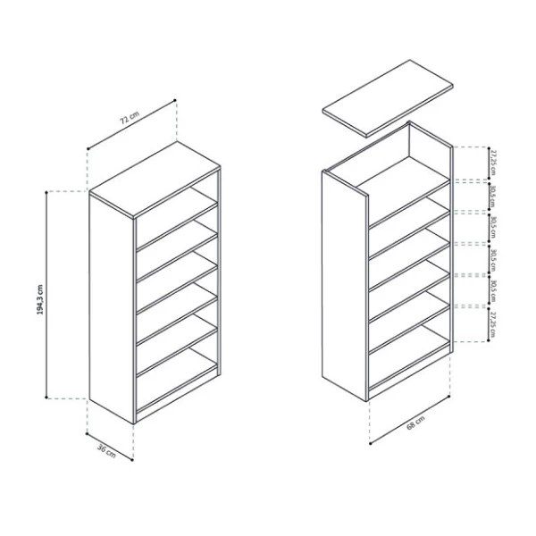 Boekenkast Stacy 72 Cm 5 Legplanken-sonoma Eik