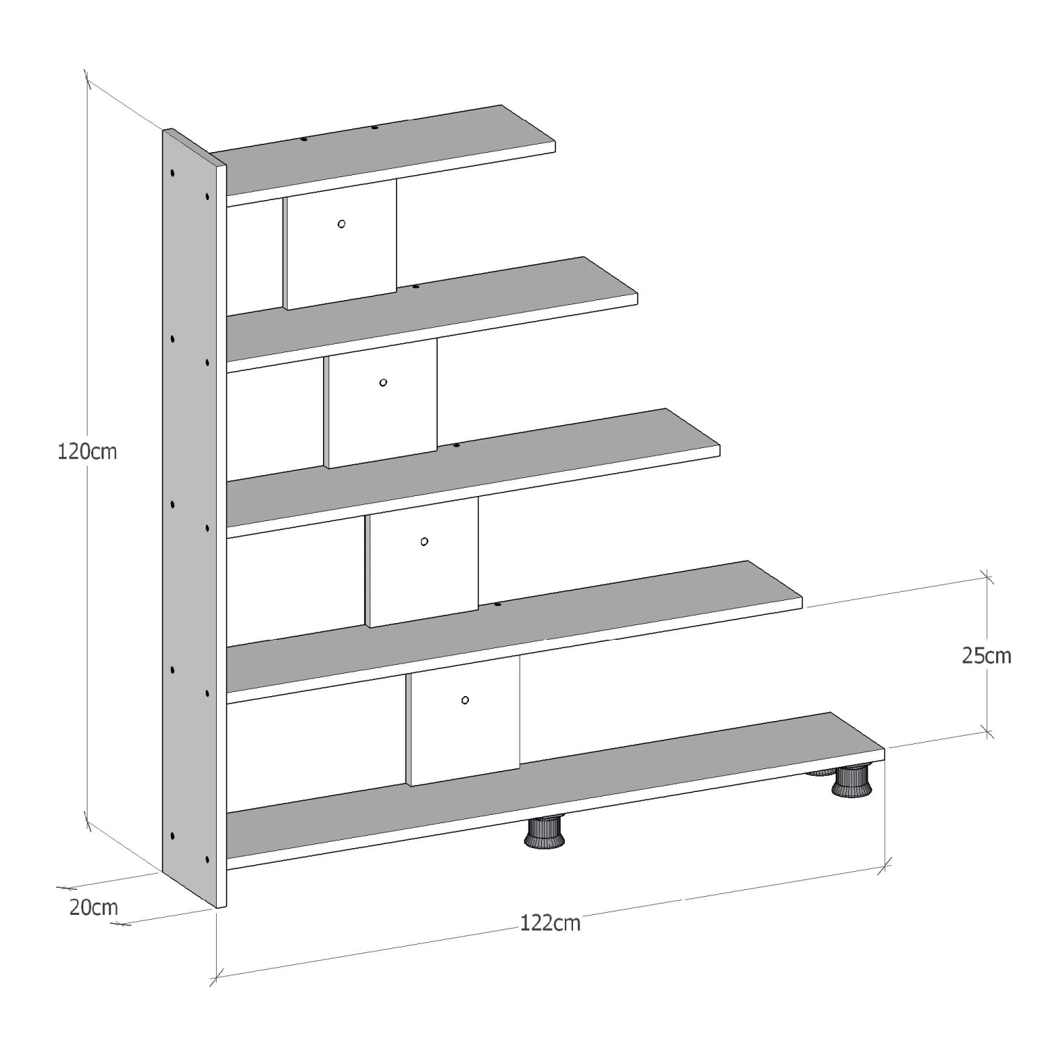 Elegance boekenplank: Stijlvol en duurzaam met 100% gemelamineerd spaanplaat. Heeft een dikte van 18 mm, afmetingen van 122x120x20 cm, meerdere planken en kan aan de muur worden bevestigd. Kleur: Wit