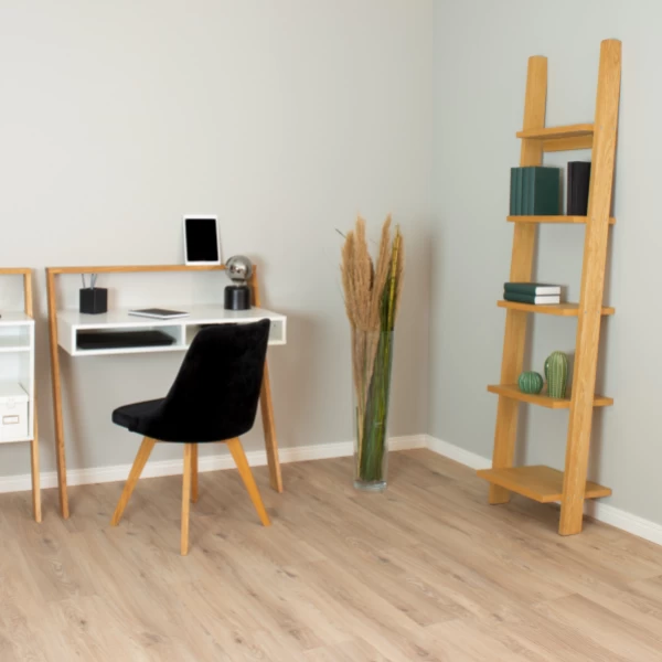 Laddervormig boekenrek Solvay geeft een speelse toets aan uw interieur. Het rek bestaat uit 5 legplanken waar u uw boeken en decoratie kunt uitstallen. De schroeven en pluggen om het rek tegen de muur te monteren zijn niet inbegrepen. Combineer eventueel met het langere boekenrek van Solvay om zo nog meer opbergruimte te creëren. Het rek is verkrijgbaar in meerdere kleuren. Bekijk onze website en kies het Solvay boekenrek die het beste past bij uw interieur!