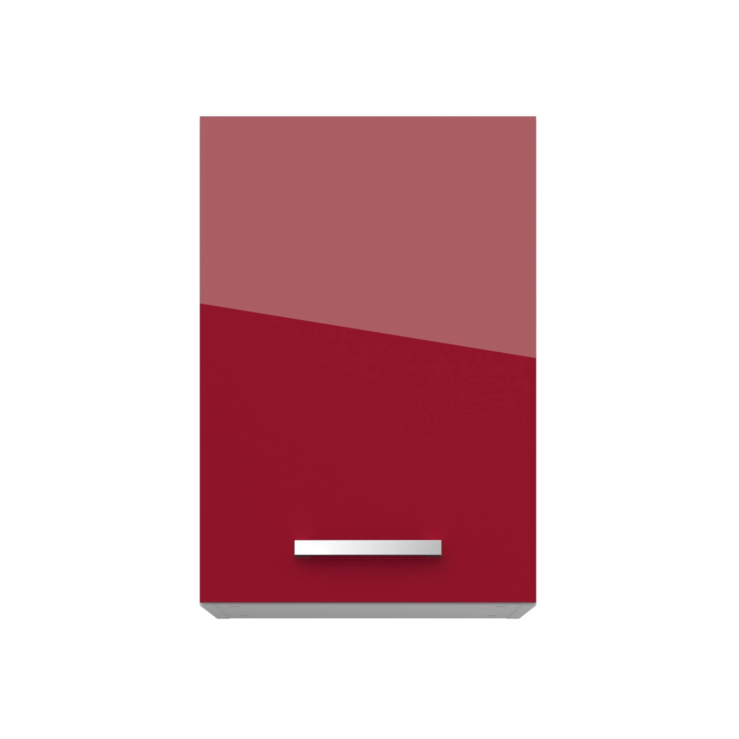 Bovenkast Eli met legplank, gemaakt van spaanplaat, afgewerkt in hoogglans rood. Lengte: 40 cm.