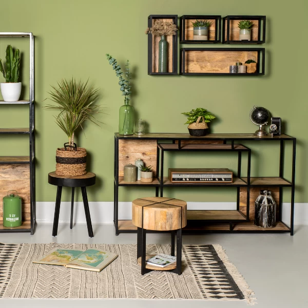 Buffet Levels 150cm Met Open Vakken – Mangohout/ijzer