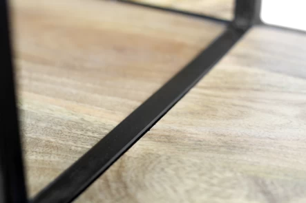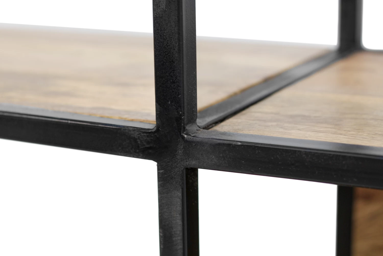 Levels, gemaakt uit een combinatie van metaal en mangohout. Het meubel heeft 6 legplanken en een inwendig rechthoekig frame.