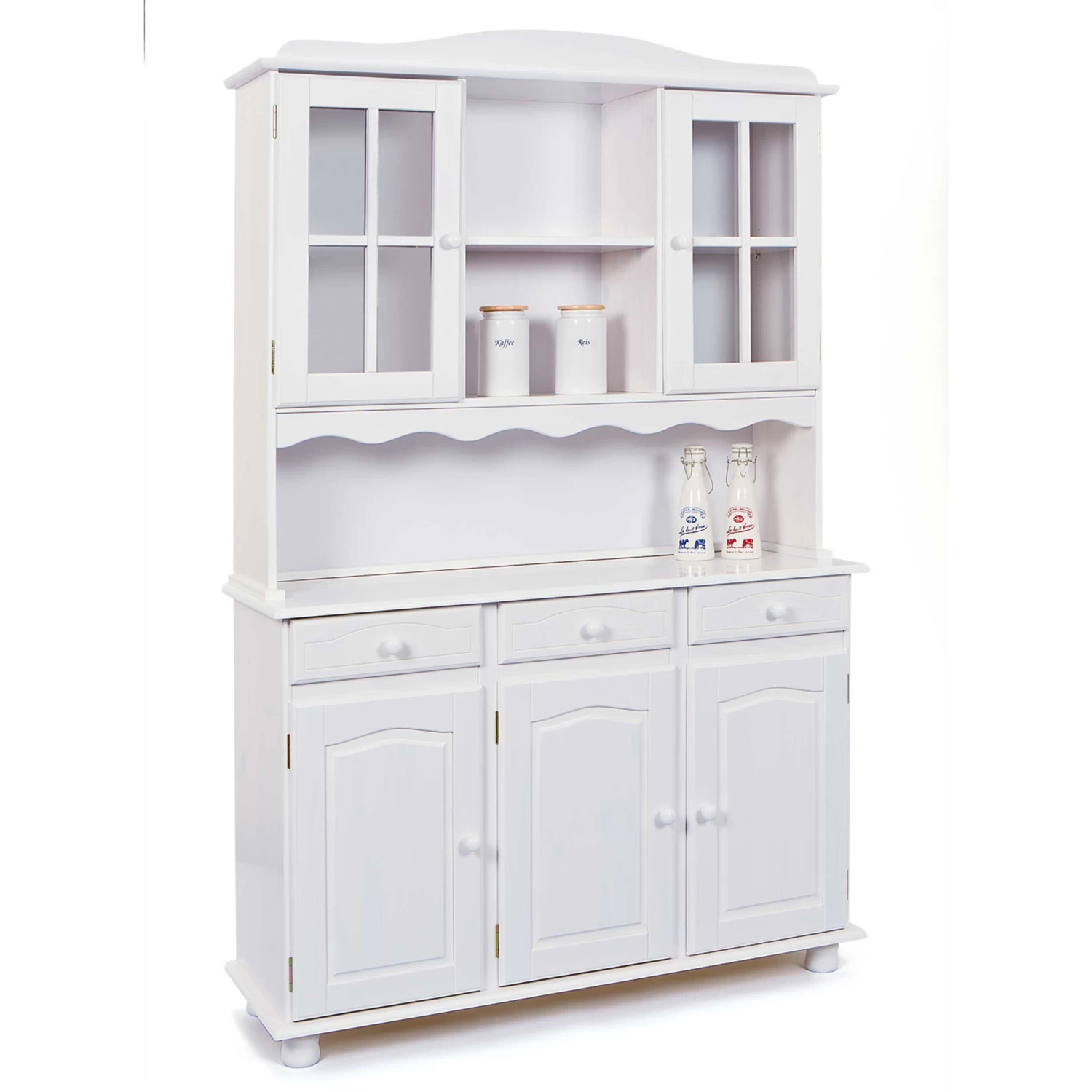 Geef een frisse toets aan jouw interieur met deze witte buffetkast in massief den. Onderaan verbergen de 3 grote deuren een grote opbergruimte. Daarboven zijn er 3 lades voorzien. Op het open opbergvak kan je een aantal leuke spulletjes uitstallen.
