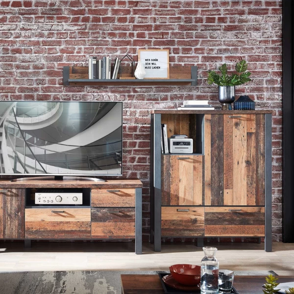 Buffetkast Carthago 2 Deuren & 2 Lades – Oud Hout/antraciet
