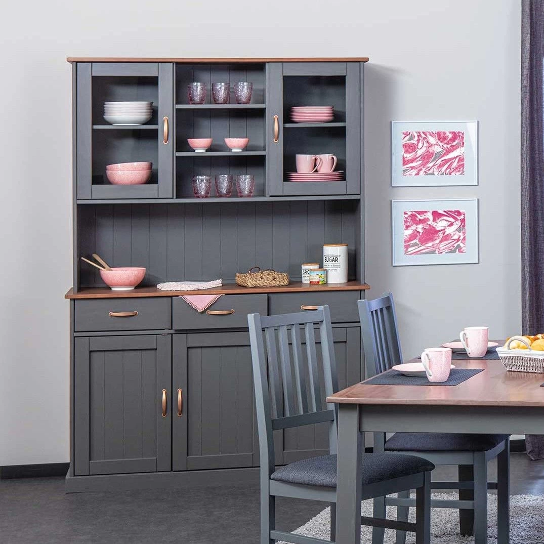 Buffetkast Cerci met 5 deuren en 3 lades, gemaakt uit donkergrijs gelakt massief dennenhout.Â