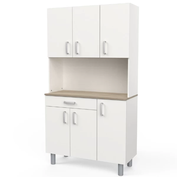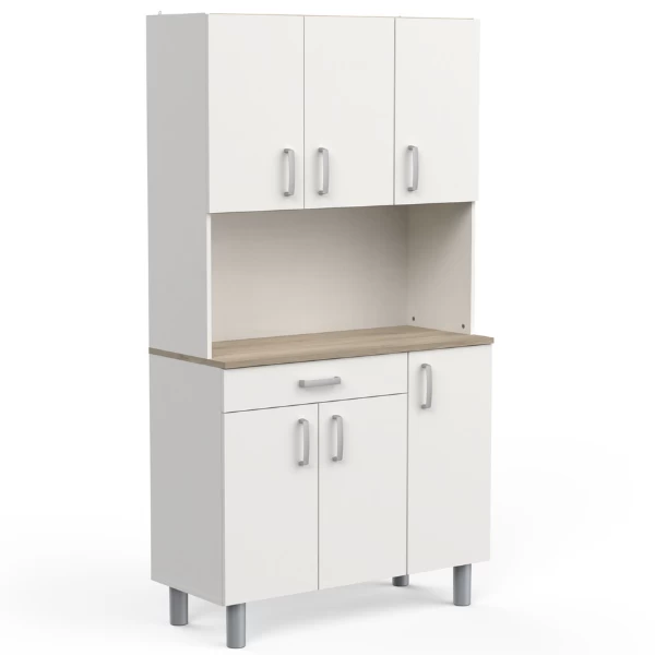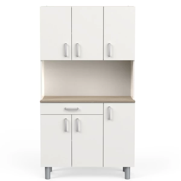 Deze neutrale buffetkast kan gemakkelijk geïntegreerd worden in bijna elk interieur. Het werkblad in Kronberg eikdecor geeft het meubel een mooi natuuraccent. Achter de 4 draaideuren is er veel opbergruimte voorzien voor uw servies en voorraad. De handige lade biedt plaats aan uw bestek. Het open vak kunt u vrijlaten om als werkblad te gebruiken of u kunt er allerhande keukenapparatuur zoals een microgolfoven of koffiemachine in plaatsen. Houd uw keuken gemakkelijk opgeruimd met buffetkast Gabe.