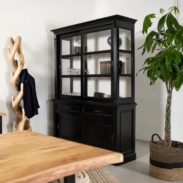 Deze klassieke buffetkast van HSM Collection met landelijke uitstraling heeft alles waar je naar op zoek bent: glazen schuifdeuren die soepel open glijden, ruime lades en praktische opbergvakken. Deel de kast in naar jouw smaak – mooi minimalistisch, of juist gezellig vol. Zo wordt dit rustieke meubel de blikvanger van jouw kamer, en heb je alles wat je nodig hebt binnen handbereik. De witte achterkant zet de voorwerpen in de kast nog meer in de kijker! Verkrijgbaar in vele kleuren, dus er zit er zeker één tussen die aan jouw wensen voldoet.Â