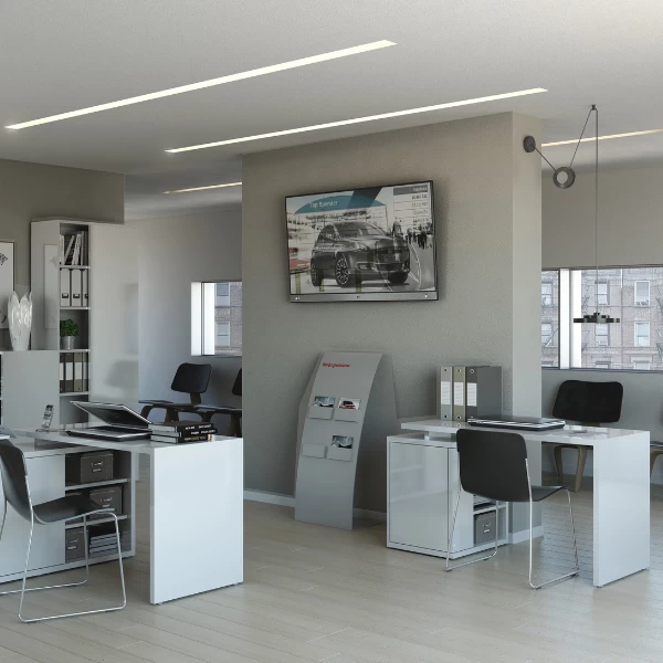 Met de kantoormeubels uit de collectie Cory creëer je een strakke en moderne look in je (thuis)kantoor. Deze bureau is gemaakt uit spaanplaat en afgewerkt met melamine in witte hoogglans. Dit bureau heeft niet alleen een ruim werkblad van 140x70cm, maar is ook uitgerust met praktische opbergruimte. Dankzij de open opbergvakken heb je steeds je meest belangrijke kantoormateriaal dicht bij de hand, terwijl je achter de draaideur allerlei dossiers uit het zicht kan opbergen. Ontdek de andere meubels uit de reeks Cory en richt je kantoor volledig in. Dit bureau bestaat ook in een versie in eikdecor en betonlook.