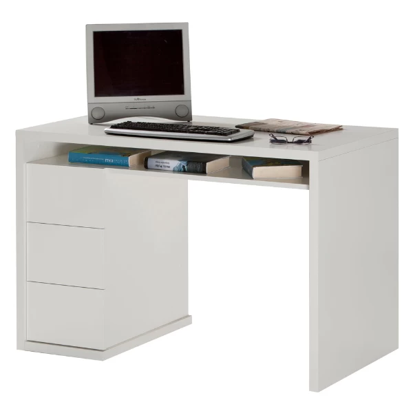 Bureau Monique 110x60x75cm uit spaanplaat met afwerking in melamine in hoogglans wit. Met drie opberglades.