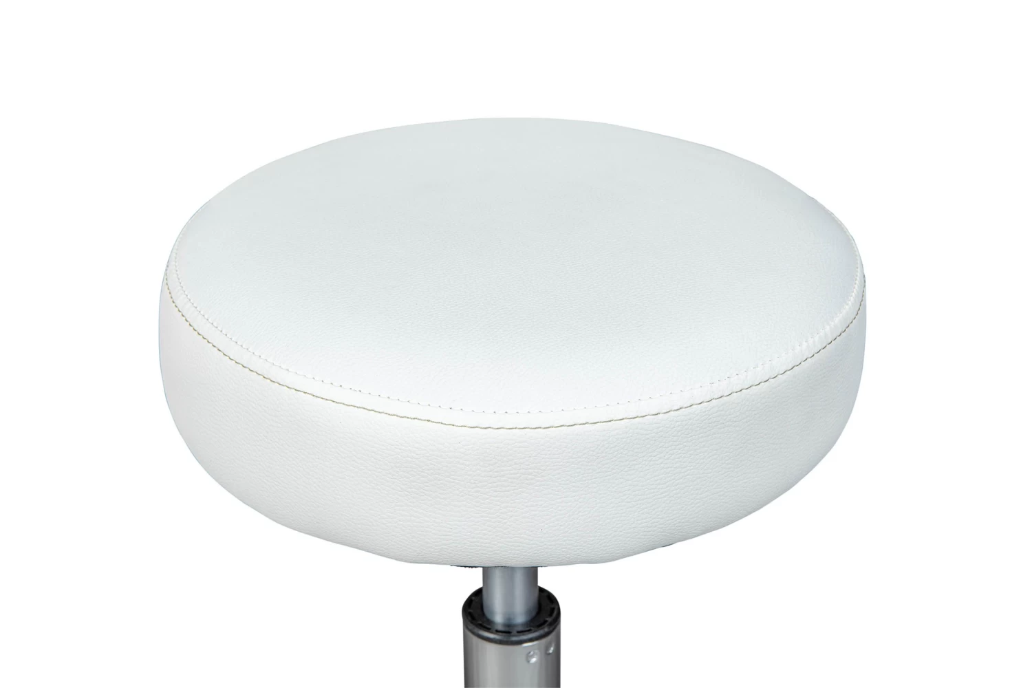 Het bureaukrukje Asra op wielen is bekleed met wit kunstleer. Het bureaukrukje is heel praktisch dankzij de wieltjes en de verstelbare zithoogte. Je kan je met dit krukje gemakkelijk verplaatsen van de ene kant naar de andere en genieten van een optimaal zitcomfort dankzij de vulling in polyurethaan schuim.