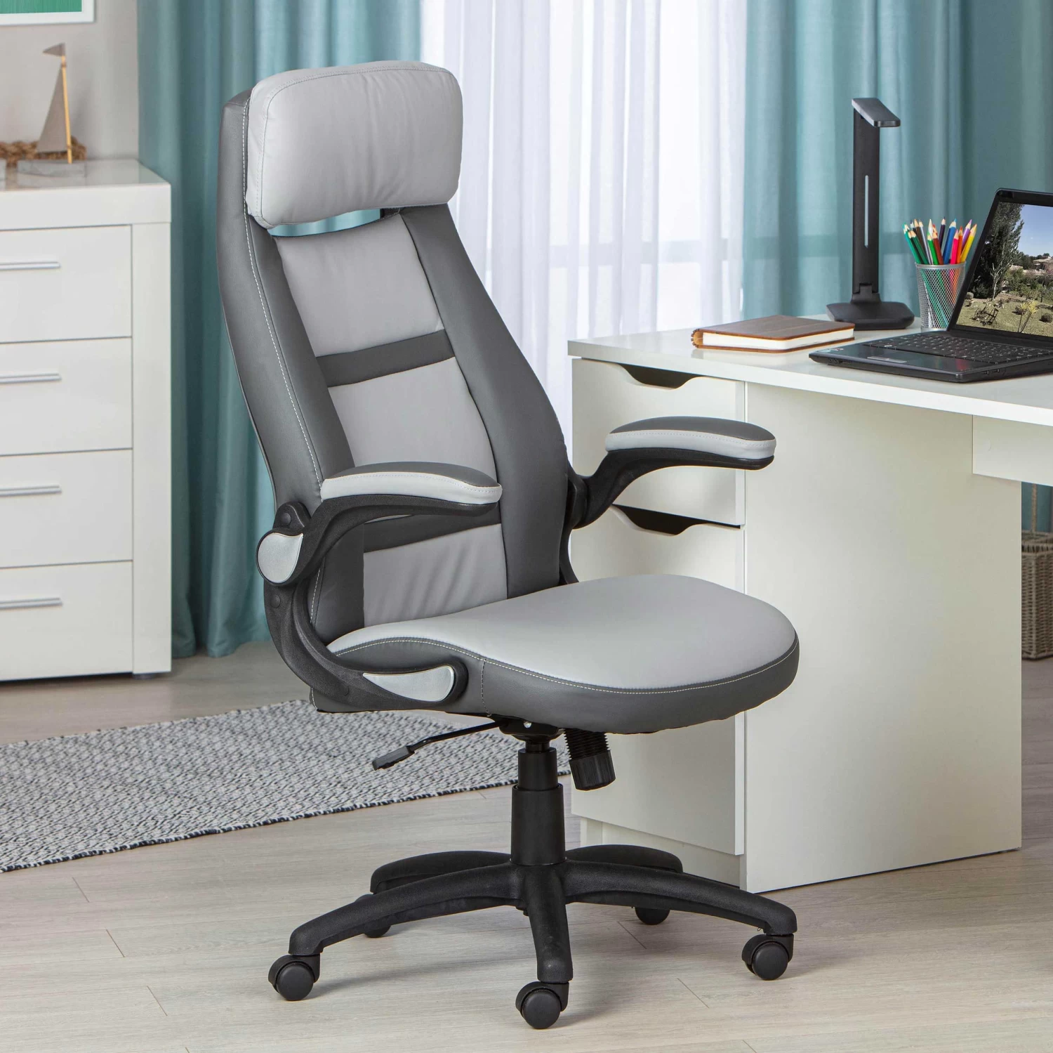 Deze comfortabele draai- en bureaustoel combineert verschillende tinten grijs op een hedendaagse manier. De basis van de stoel is gemaakt uit kunststof, de bekleding is volledig in PU. De stoel is in de hoogte verstelbaar en de armleuningen zijn erg zacht, waardoor je de schouders wat kan ontlasten bij langdurig gebruik. Ook de rugleuning is ergonomisch, waardoor je op lange termijn rugpijn kan vermijden. Een uitstekende bureaustoel voor een schappelijke prijs!