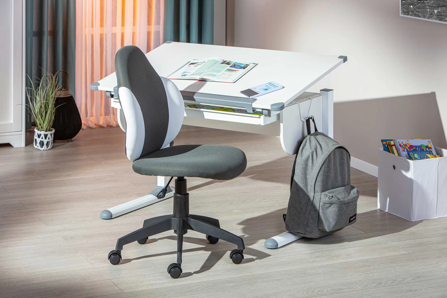 Gedaan met de saaie, zwarte bureaustoelen. Kies daarom voor de gekleurde Jessie bureaustoelen. De grijze kleur van deze bureaustoel gecombineerd met de witte details fleurt jouw bureau helemaal op. Daarnaast is deze stoel in hoogte verstelbaar en voorzien van vijf wielen. Je kan deze stoel in vier verschillende kleuren verkrijgen: blauw/wit, oranje/groen, roze/wit en grijs/wit.
