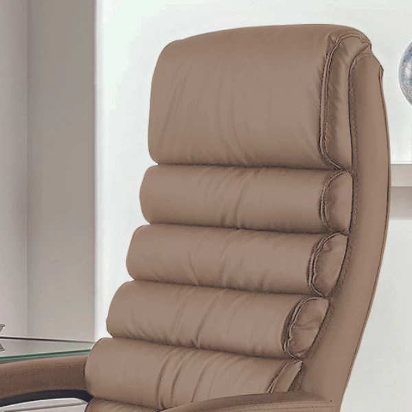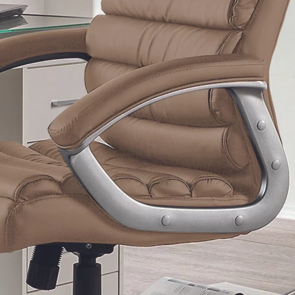 Dankzij deze elegante, taupe bureaustoel hoef je niet langer rugpijn te hebben wanneer je vaak aan je bureau moet werken.