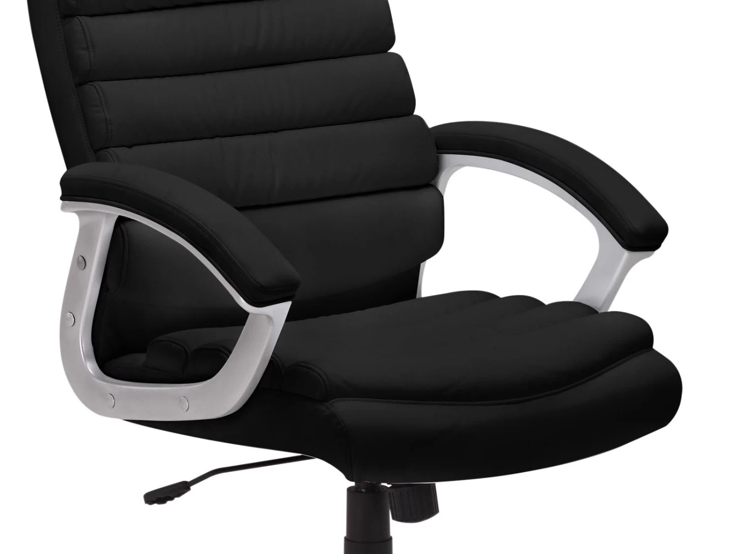 Dankzij deze elegante, zwarte bureaustoel hoef je niet langer rugpijn te hebben wanneer je vaak aan je bureau moet werken.