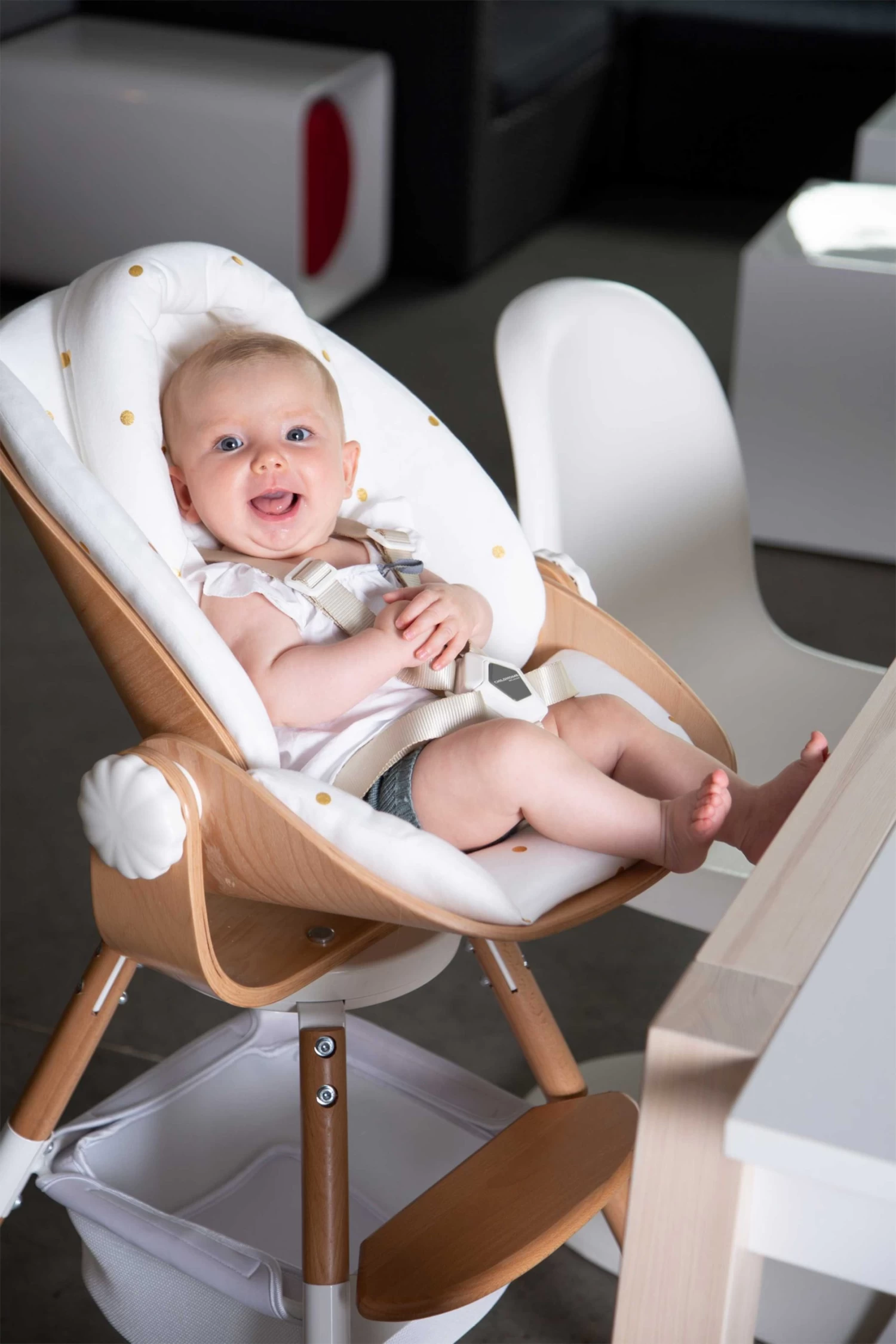 Dankzij dit babyzitje kan je de trendy Evolu 2 of Evolu ONE80° kinderstoelen al vanaf de geboorte gebruiken! Zo kunnen ook de allerkleinsten gezellig aanschuiven aan het kookeiland of aan de eettafel. Aan de hand van de draaiknoppen aan de zijkanten is het stoeltje makkelijk verstelbaar. Bovendien is het uitgerust met een 5-puntsveiligheidsgordel. Wil je de stoel extra comfortabel maken? Dan kan je er het bijpassende kussentje in leggen. Deze Newborn Seat is compatibel met de Evolu 2 en Evolu ONE.80°. Je kan het zitje gebruiken tot 6 kg.