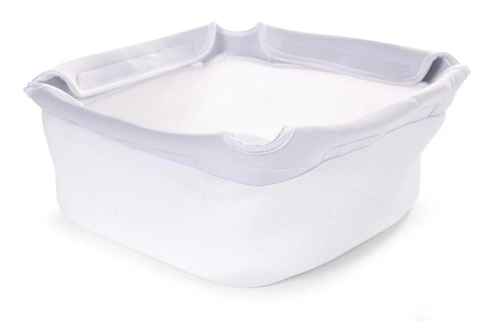 Heb je graag slabbetjes, kleurboeken of andere baby- en kinderspullen meteen binnen handbereik? Dat kan, dankzij deze handige witte opbergmand voor de Evolu 2-kinderstoel. Je bevestigt het mandje heel gemakkelijk aan het metalen frame van de hoge stoel met behulp van de velcro plakkers. Is het mandje vuil, dan kan je het wassen in de machine op 30°.
