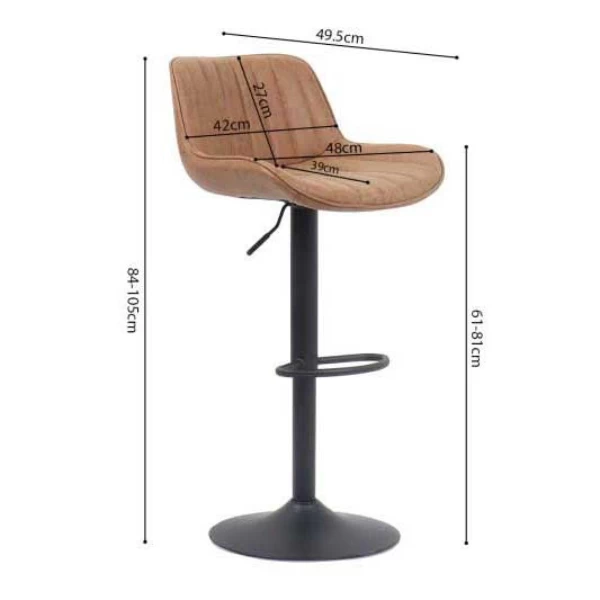 Maak kennis met barkruk ‘Fenna’: Vintage geïnspireerde PU bekleding, metalen poten voor stevige ondersteuning | In hoogte verstelbaar en compact ontwerp | H84-105 x B48 x D49,5 cm.