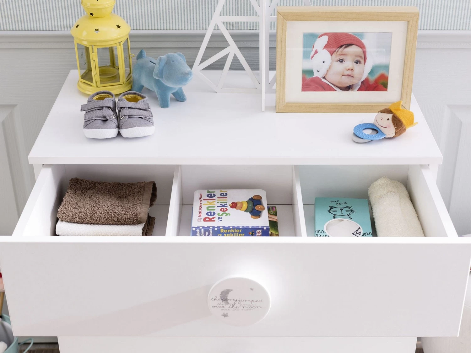 Als het op de veiligheid van je kleintjes aankomt, ben je met de commode helemaal klaar. De materialen die gebruikt zijn bij de constructie zijn baby- en kindvriendelijk, zodat er geen schadelijke chemicaliën of scherpe randen zijn die een gevaar kunnen vormen voor je kleintjes. Je kunt gerust zijn in de wetenschap dat je kinderen veilig zijn in de buurt van deze commode.