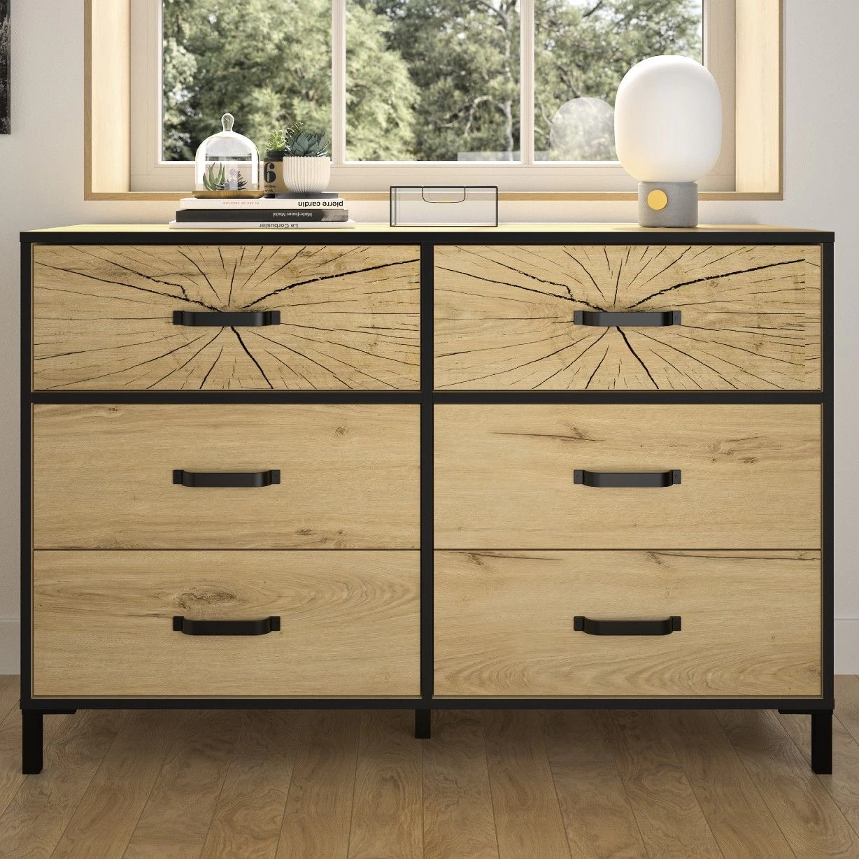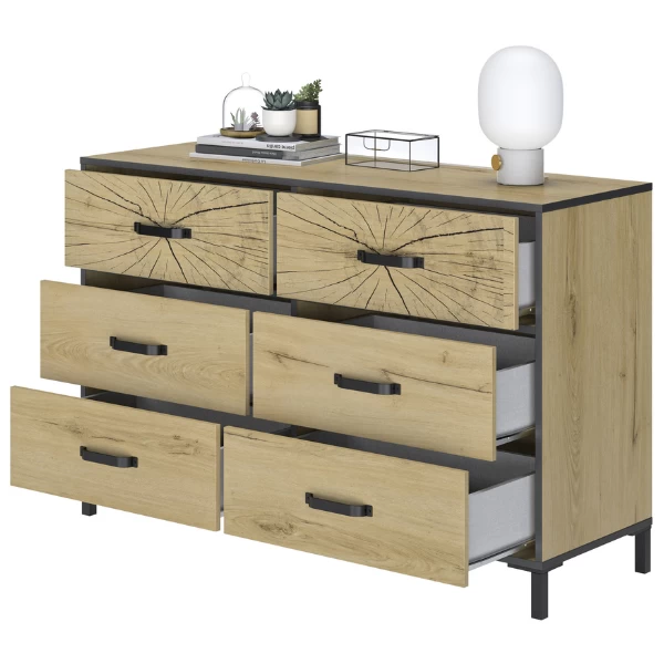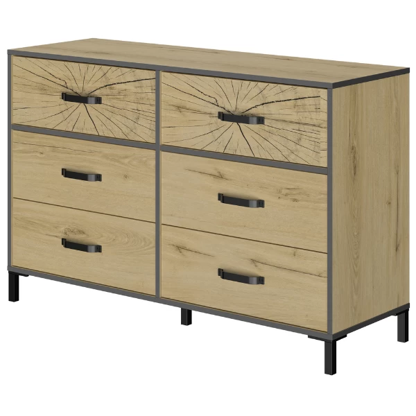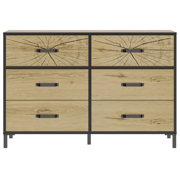 Commode Armelle 125cm, 6 Lades – Eik Decor/zwart