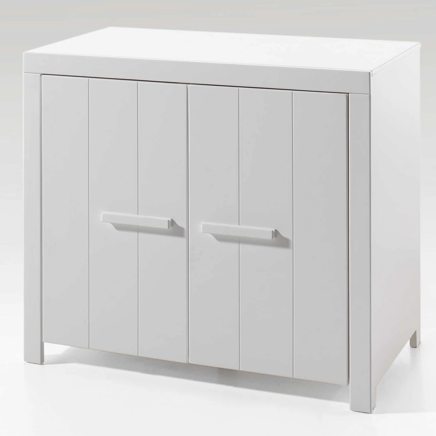 Met commode Erik creëer je een rustige en gezellige sfeer in de baby- of kinderkamer. Dankzij de witte kleur past dit meubel bij elke stijl, van klassiek tot modern. De commode is gemaakt van massief den en MDF en heeft een verfijnde afwerking. Ze bestaat uit 2 deuren waarachter je een legplank vind. Je beschikt dus over voldoende opbergruimte zodat je alle praktische spulletjes van je oogappel altijd dicht bij de hand hebt!