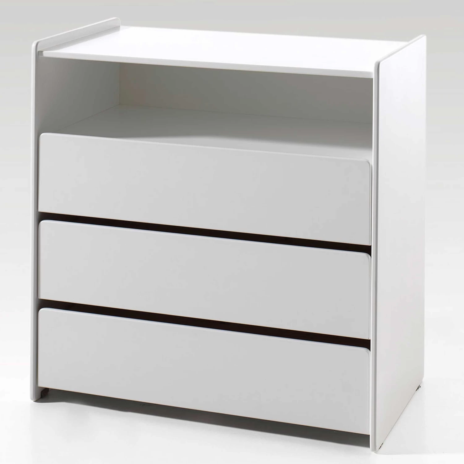 Witte commode Kiddy uit MDF, met 3 laden en open vak. Exclusief luierplank.