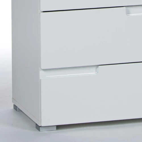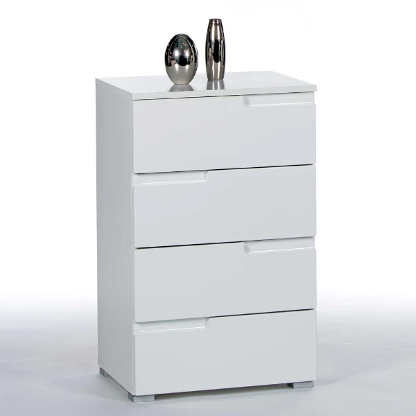 Commode Peso met 4 lades. Gemaakt uit witte MDF, voorkant afgewerkt in hoogglans.