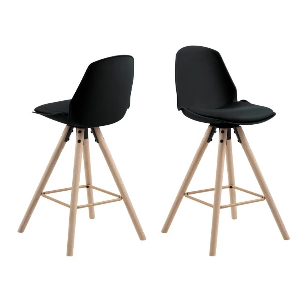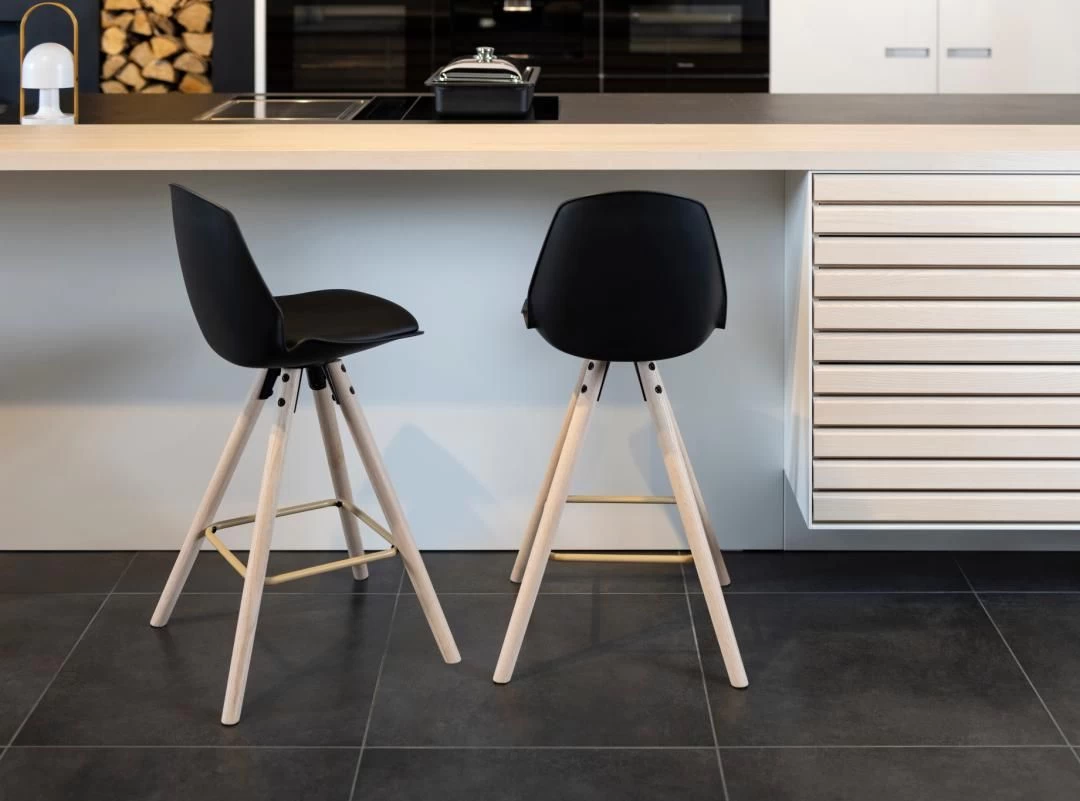 Modern Scandinavisch design, gemaakt om uw huis vele jaren up-to-date te houden. Het natuurlijke hout en de zwarte zitting van deze barkruk Sammy zijn eenvoudig en tijdloos. De styling opties met deze baliekruk zijn eindeloos. Om de stoel extra comfortabel te maken, wordt de zitting geleverd met het allerzachtste kussen en een hogere rugleuning. De beige voetsteun is aangenaam om naar te kijken, maar het belangrijkste is dat hij de poef nog stabieler houdt.